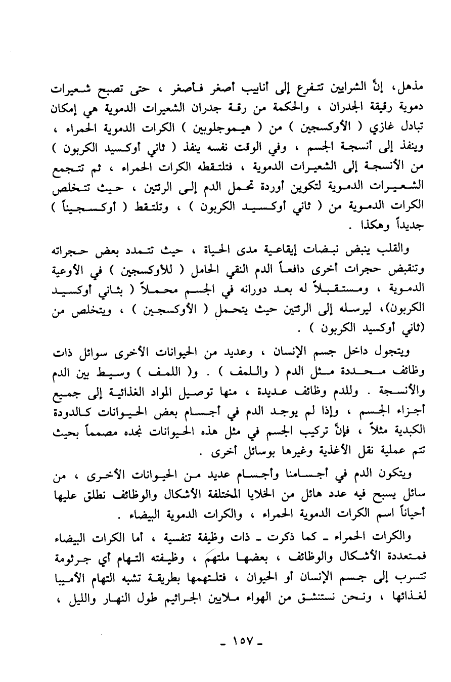 مذهل، إنّ الشرايين تتفرع إلى أنابيب أصغر فأصغر، حتى تصبح شعيرات دموية رقيقة الجدران، والحكمة من رقة جدران الشعيرات الدموية هي إمكان تبادل غازي (الأوكسجين) من (هيموجلوبين) الكرات الدموية الحمراء، وينفذ إلى أنسجة الجسم، وفي الوقت نفسه ينفذ (ثاني أوكسيد الكربون) من الأنسجة إلى الشعيرات الدموية، فتلتقطه الكرات الحمراء، ثم تتجمع الشعيرات الدموية لتكوين أوردة تحمل الدم إلى الرئتين، حيث تتخلص الكرات الدموية من (ثاني أوكسيد الكربون) ، وتلتقط (أوكسجيناً) جديداً وهكذا.