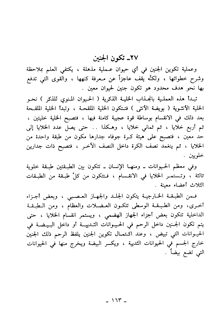 وعملية تكوين الجنين في أي حيوان عملية مذهلة، يكتفي العلم بملاحظة وشرح خطواتها، ولكنّه يقف عاجزاً عن معرفة كنهها، والقوى التي تدفع بها نحو هدف محدود هو تكون جنين لحيوان معين.