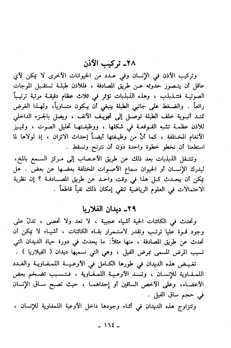 وتحدث في الكائنات الحية أشياء عجيبة، لا تعد ولا تحصى، تدلّ على وجود قوة عليا ترتب وتقدر لاستمرار بقاء الكائنات، أشياء لا يمكن أن تحدث عن طريق المصادفة، منها مثلاً: ما يحدث في دورة حياة الديدان التي تسبب المرض المسمى بمرض الفيل، وهي التي نسميها ديدان (الفيلاريا) .