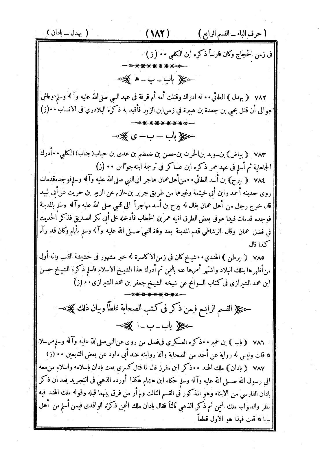 القسم الرابع من حرف الباء الموحدة فيمن ذكر في كتب الصحابة غلطا وبيان ذلك الباء بعدها الألف