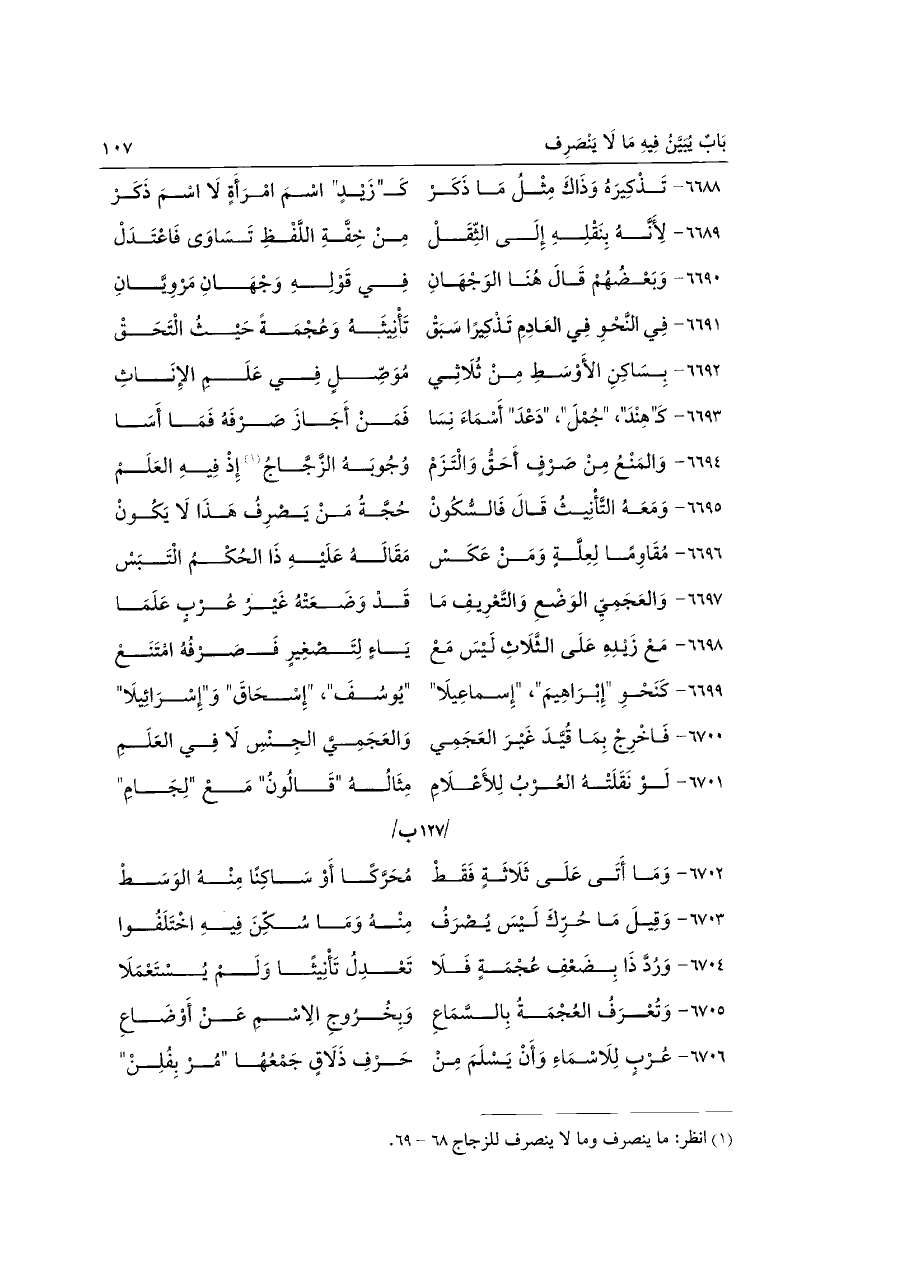 (¬١) انظر: ما ينصرف وما لا ينصرف للزجاج ٦٨ - ٦٩.