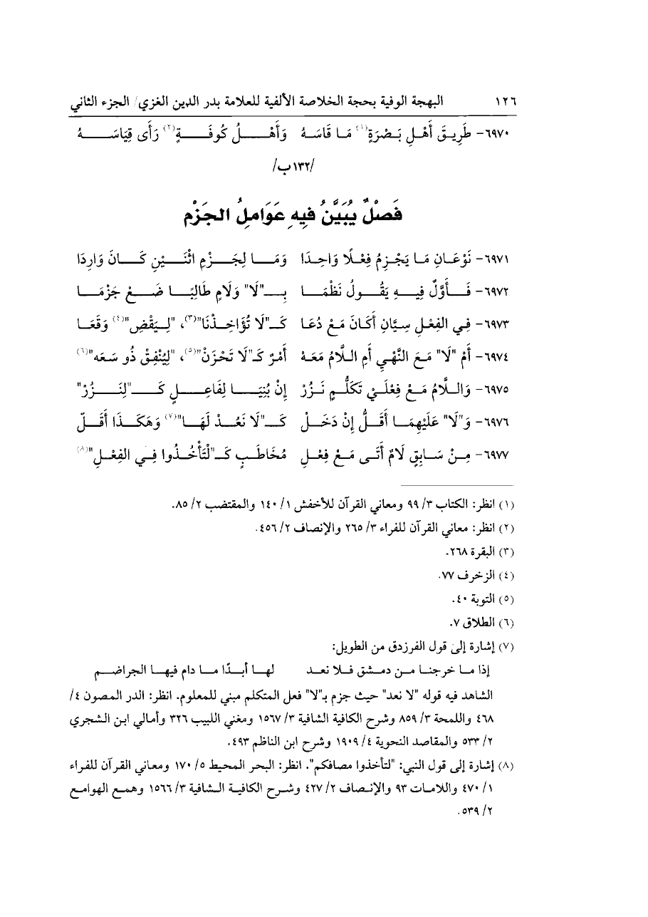 (¬٨) إشارة إلى قول النبي: "لتأخذوا مصافكم". انظر: البحر المحيط ٥\ ١٧٠ ومعاني القرآن للفراء ١\ ٤٧٠ واللامات ٩٣ والإنصاف ٢\ ٤٢٧ وشرح الكافية الشافية ٣\ ١٥٦٦ وهمع الهوامع ٢\ ٥٣٩.