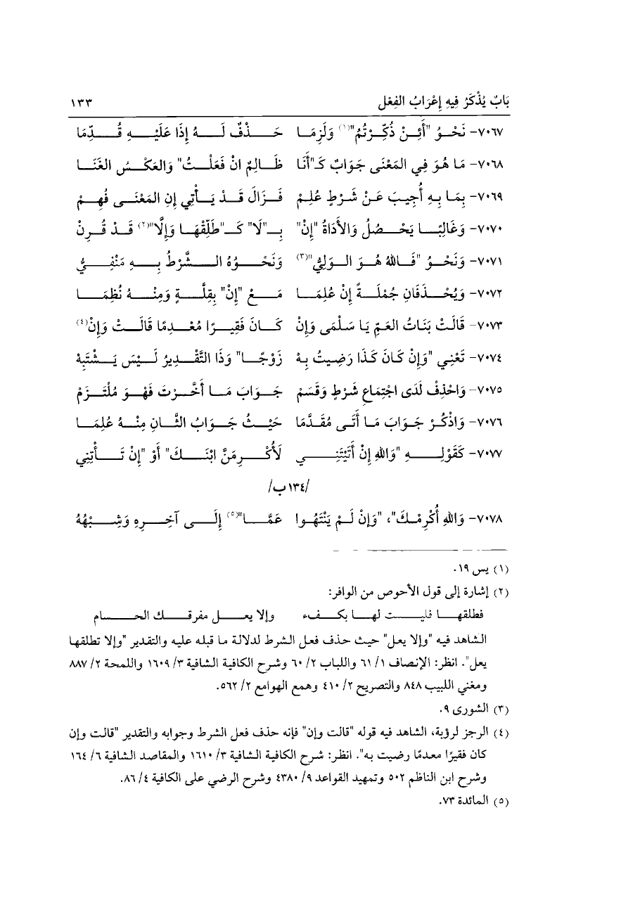 ٧٠٧٧ - كَقَوْلِهِ "وَاللهِ إِنْ أَتَيْتَنِي ... لَأُكْرِمَّنَ ابْنَكَ" أَوْ "إِنْ تَأْتِنِي ... /١٣٤ ب/