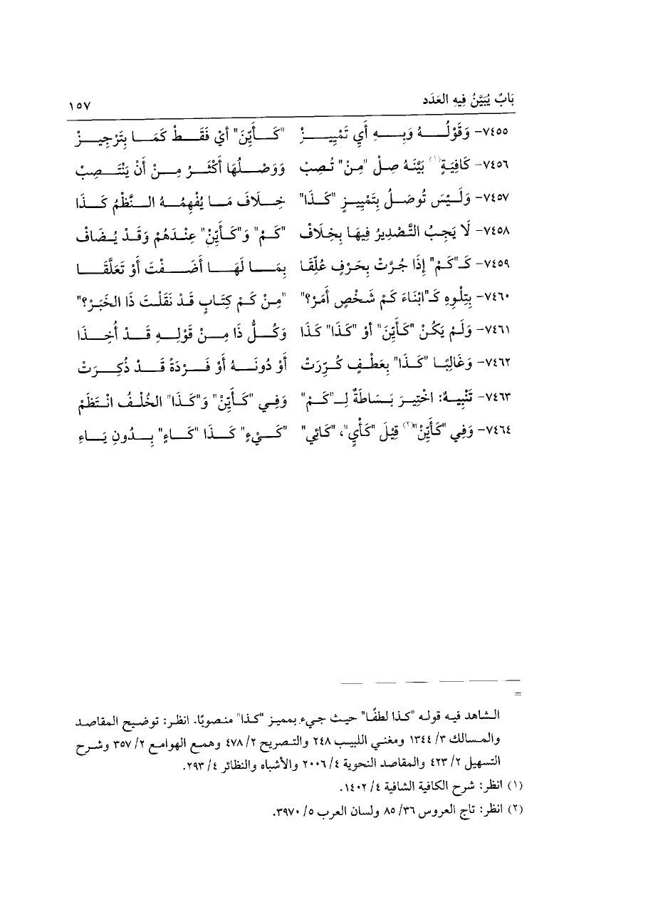 ٧٤٦٣ - تَنْبِيهٌ: اخْتِيرَ بَسَاطَةٌ لِـ"كَمْ" ... وَفِي "كَأَيِّنْ" وَ"كَذَا" الخُلْفُ انْتَظَمْ