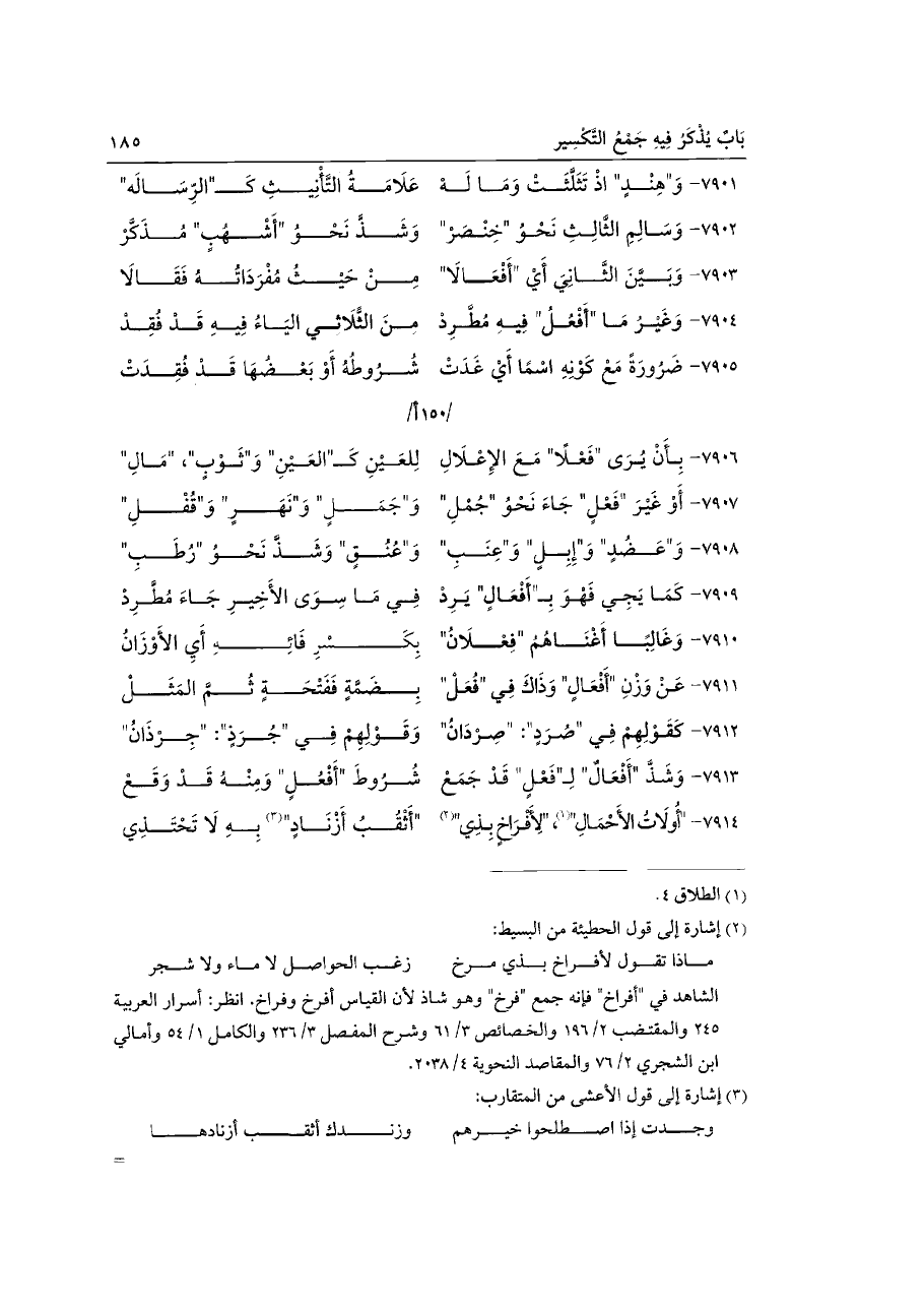 ٧٩٠٣ - وَبَيَّنَ الثَّانِيَ أَيْ "أَفْعَالَا" ... مِنْ حَيْثُ مُفْرَدَاتُهُ فَقَالَا