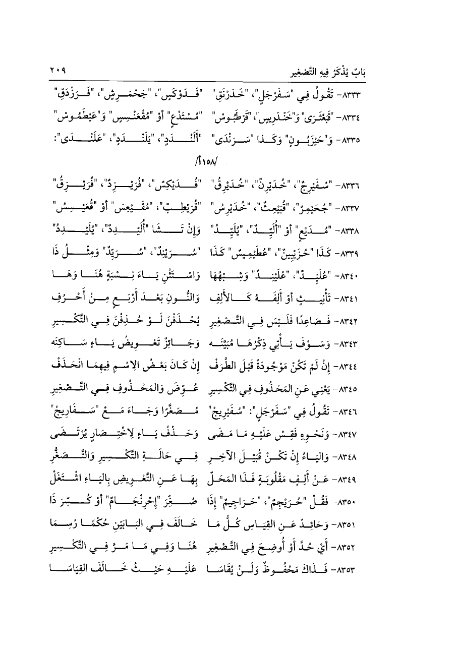 ٨٣٥٢ - أَيْ حُدَّ أَوْ أُوضِحَ فِي التَّصْغِيرِ ... هُنَا وَفِي مَا مَرَّ فِي التَّكْسِيرِ