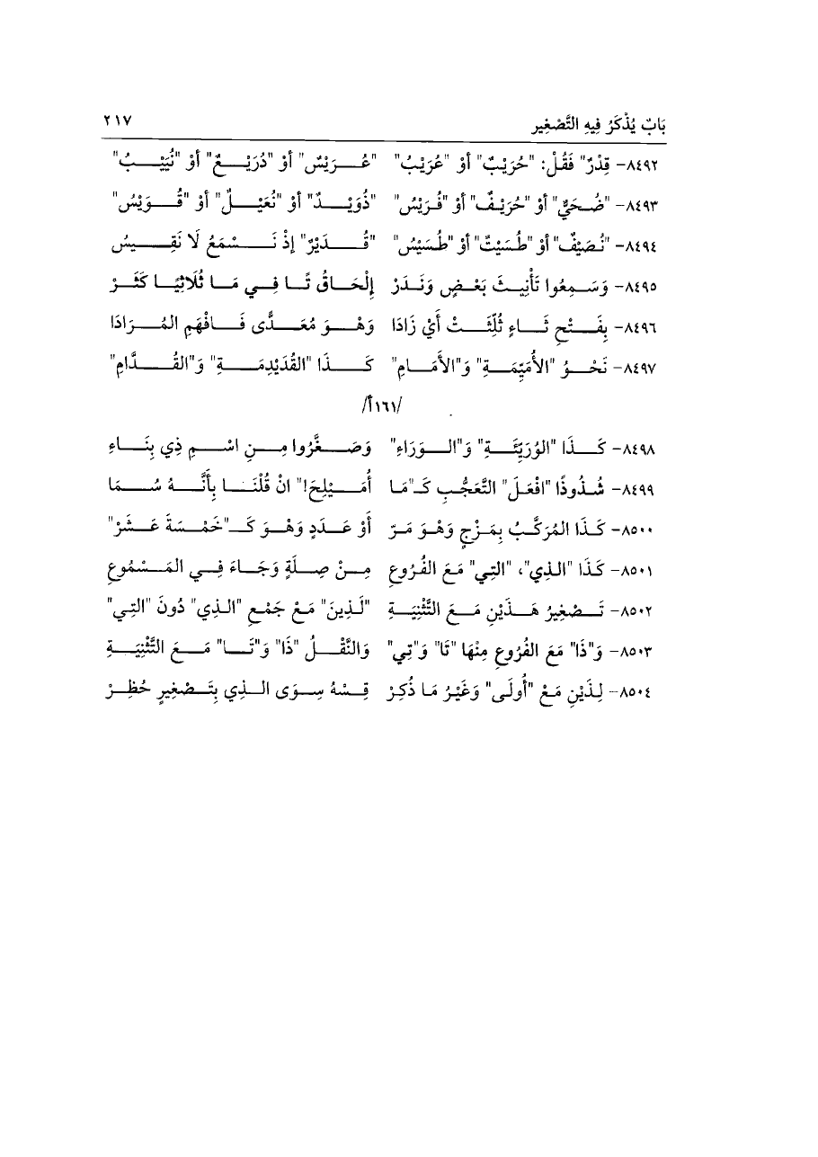 ٨٤٩٧ - نَحْوُ "الأُمَيِّمَةِ" وَ"الأَمَامِ" ... كَذَا "القُدَيْدِمَةِ" وَ"القُدَّامِ" ... /١٦١ أ/