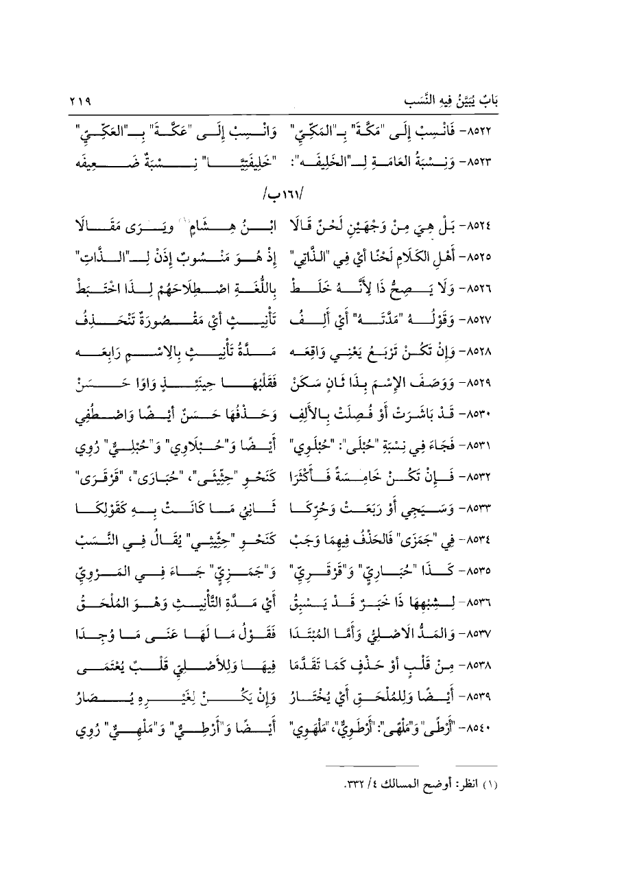 ٨٥٢٢ - فَانْسِبْ إِلَى "مَكَّةَ" بِـ"المَكِّيِّ" ... وَانْسِبْ إِلَى "عَكَّةَ" بِـ"العَكِّيِّ"