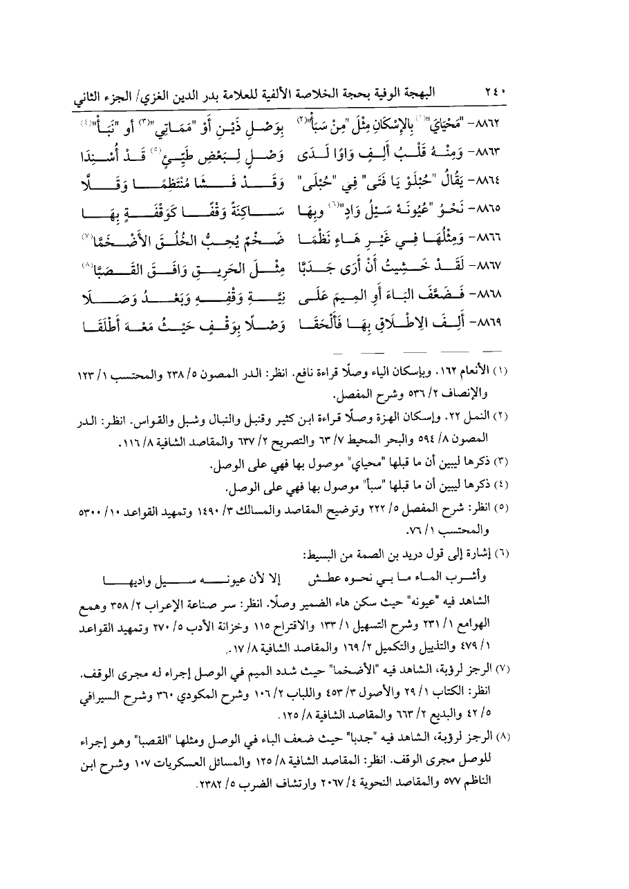 كتاب البهجة الوفية بحجة الخلاصة الألفية (اسم الجزء: 2)