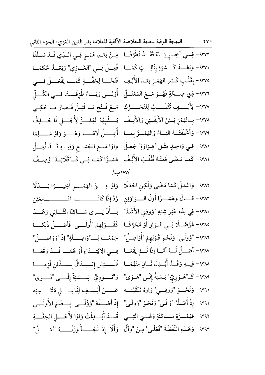 ٩٣٨١ - كَمَا مَضَى فَمِنْهُ تُقْلَبُ الأَلِفْ ... هَمْزًا كَمَا فِي كَـ"قَلَائِدَ" وُصِفْ ... /١٧٧ ب/