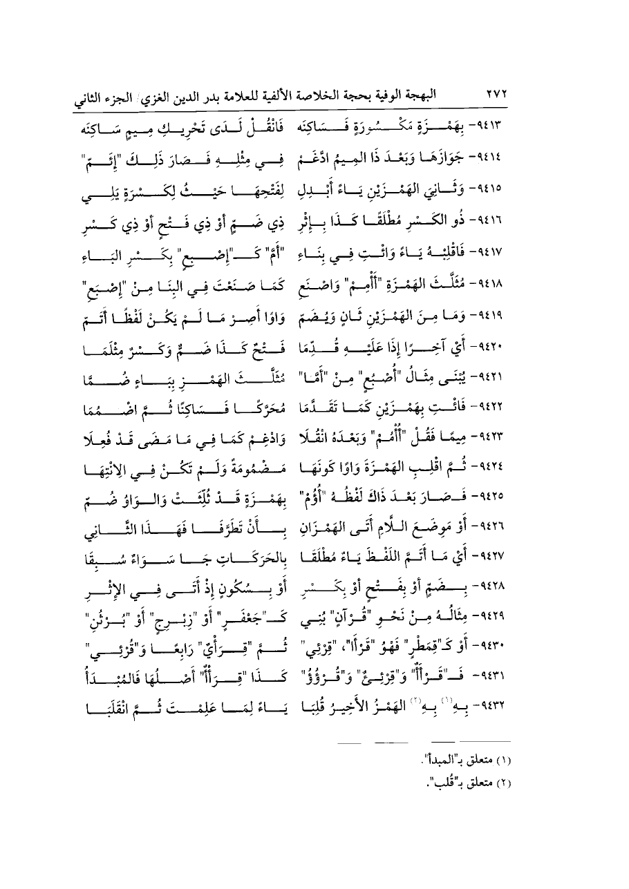 كتاب البهجة الوفية بحجة الخلاصة الألفية (اسم الجزء: 2)