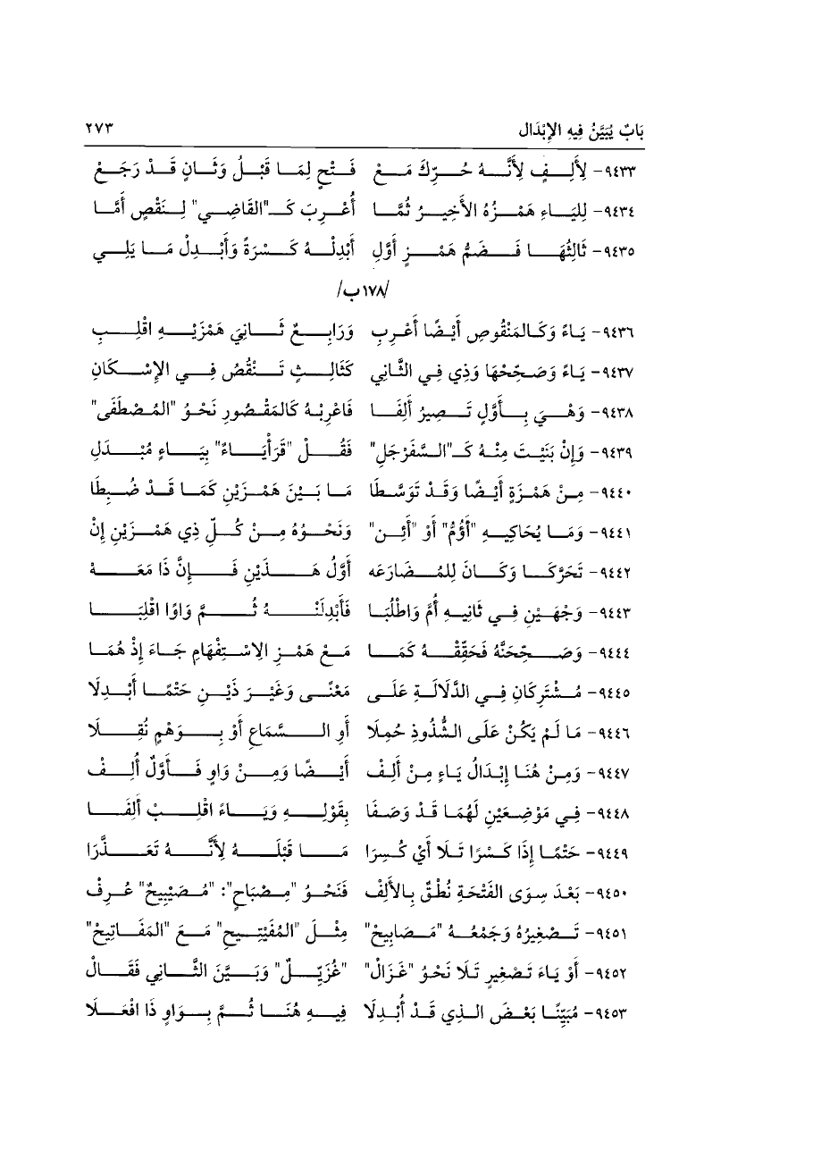 ٩٤٣٥ - ثَالِثُهَا فَضَمُّ هَمْزٍ أَوَّلِ ... أَبْدِلْهُ كَسْرَةً وَأَبْدِلْ مَا يَلِي ... /١٧٨ ب/