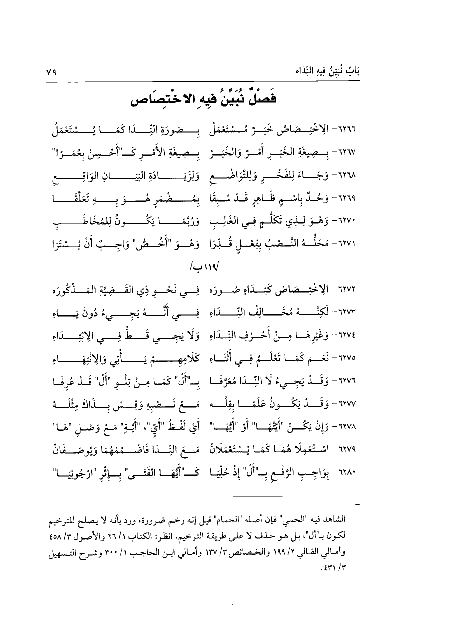 ٦٢٦٦ - الِاخْتِصَاصُ خَبَرٌ مُسْتَعْمَلُ ... بِصَورَةِ النِّدَا كَمَا يُسْتَعْمَلُ