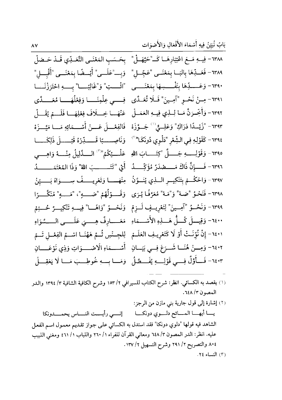 ٦٤٠٢ - وَمِنْ هُنَا شَرَعَ فِي بَيَانِ ... أَسْمَاءِ الَاصْوَاتِ وَذِي نَوْعَانِ