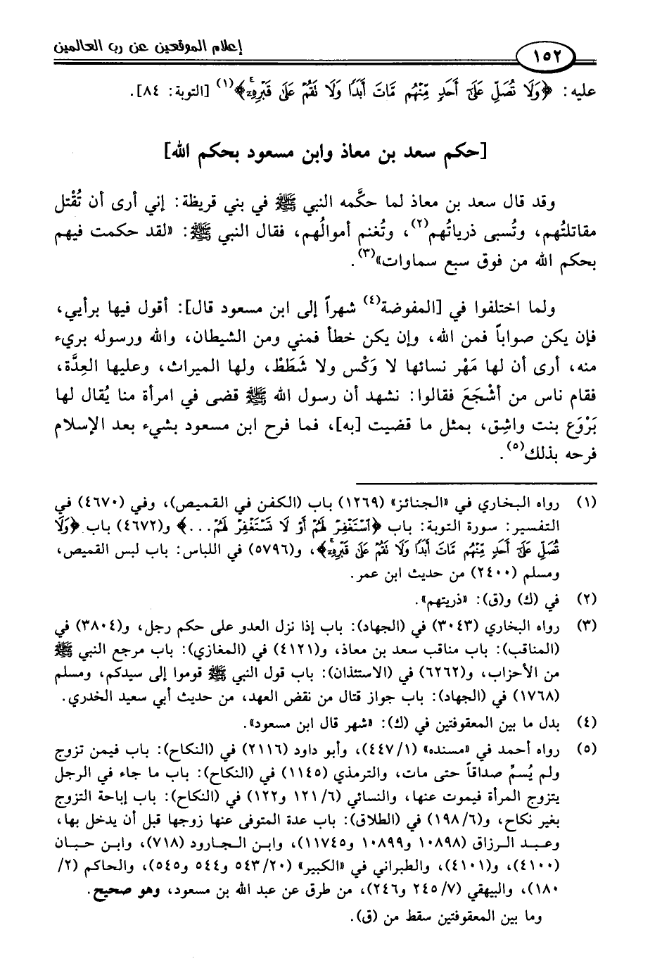 [حكم سعد بن معاذ وابن مسعود بحكم اللَّه]