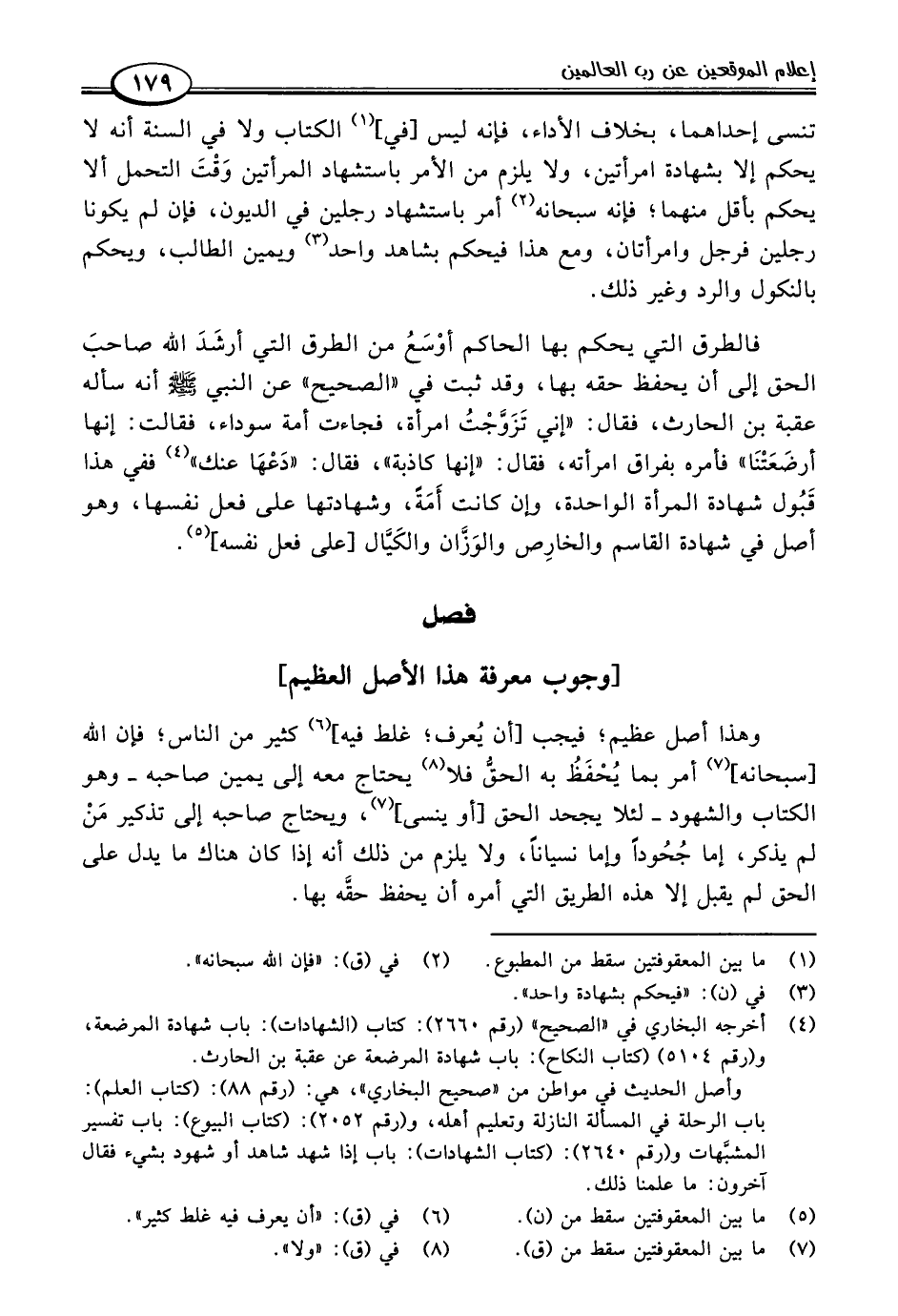 وهذا أصل عظيم؛ فيجب [أن يُعرف، غلط فيه] (٦) كثير من الناس؛ فإن اللَّه [سبحانه] (٧) أمر بما يُحْفَظُ به الحقُّ فلا (٨) يحتاج معه إلى يمين صاحبه -وهو الكتاب والشهود- لئلا يجحد الحق [أو ينسى] (٧)، ويحتاج صاحبه إلى تذكير مَنْ لم يذكر، إما جُحُودًا واما نسيانًا، ولا يلزم من ذلك أنه إذا كان هناك ما يدل على الحق لم يقبل إلا هذه الطريق التي أمره أن يحفظ حقَّه بها.