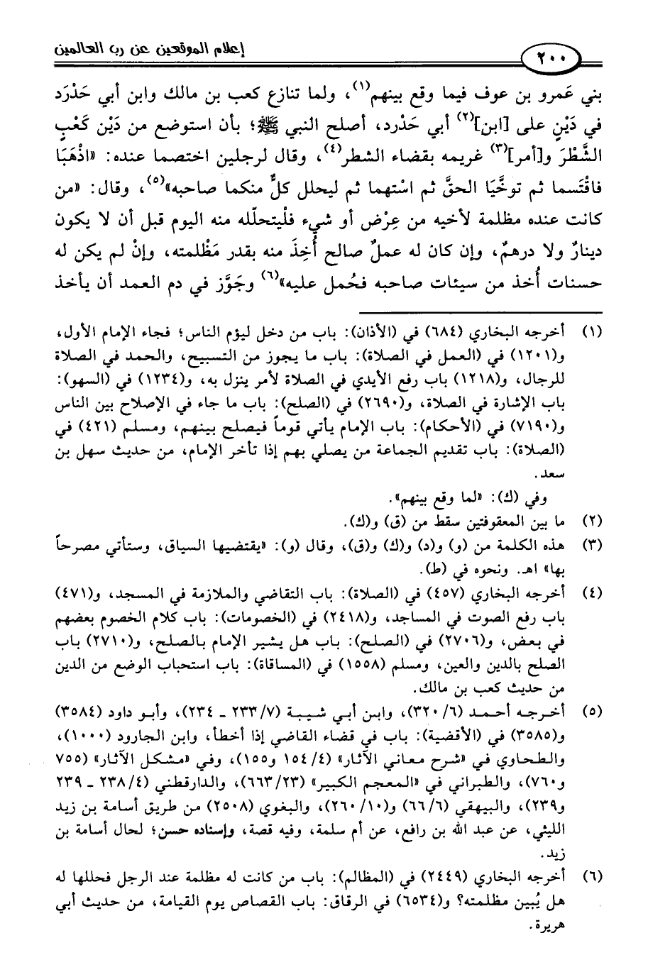 (٤) أخرجه البخاري (٤٥٧) في (الصلاة): باب التقاضي والملازمة في المسجد، و (٤٧١) باب رفع الصوت في المساجد، و (٢٤١٨) في (الخصومات): باب كلام الخصوم بعضهم في بعض، و (٢٧٠٦) في (الصلح): باب هل يشير الإمام بالصلح، و (٢٧١٠) باب الصلح بالدين والعين، ومسلم (١٥٥٨) في (المساقاة): باب استحباب الوضع من الدين من حديث كعب بن مالك.