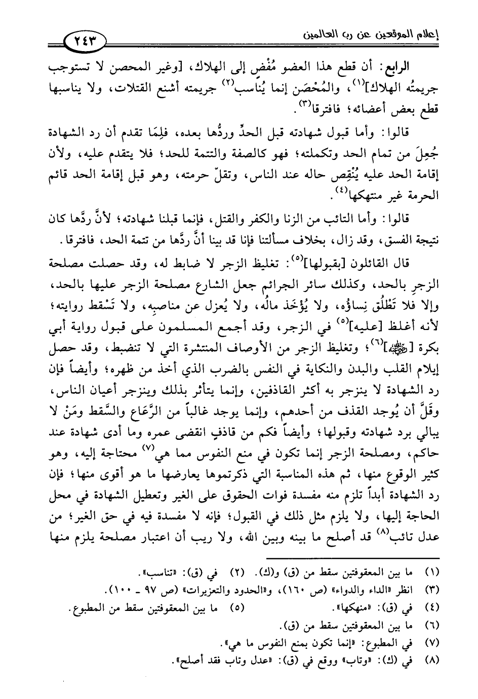 (٣) انظر "الداء والدواء" (ص ١٦٠)، و"الحدود والتعزيرات" (ص ٩٧ - ١٠٠).