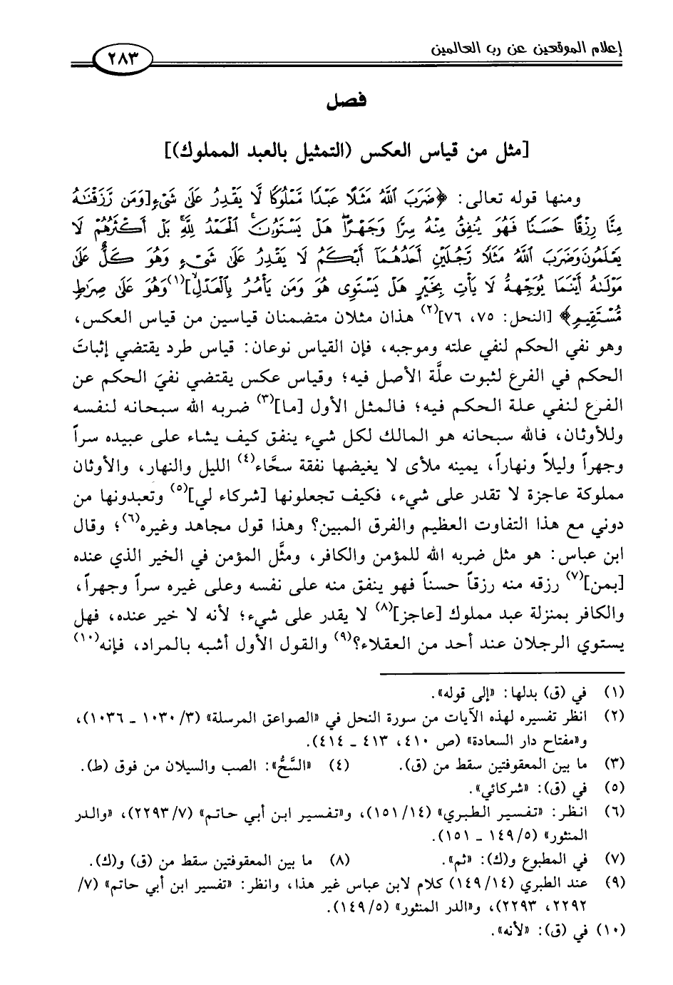 (٢) انظر تفسيره لهذه الآيات من سورة النحل في "الصواعق المرسلة" (٣/ ١٠٣٠ - ١٠٣٦)، و"مفتاح دار السعادة" (ص ٤١٠، ٤١٣ - ٤١٤).