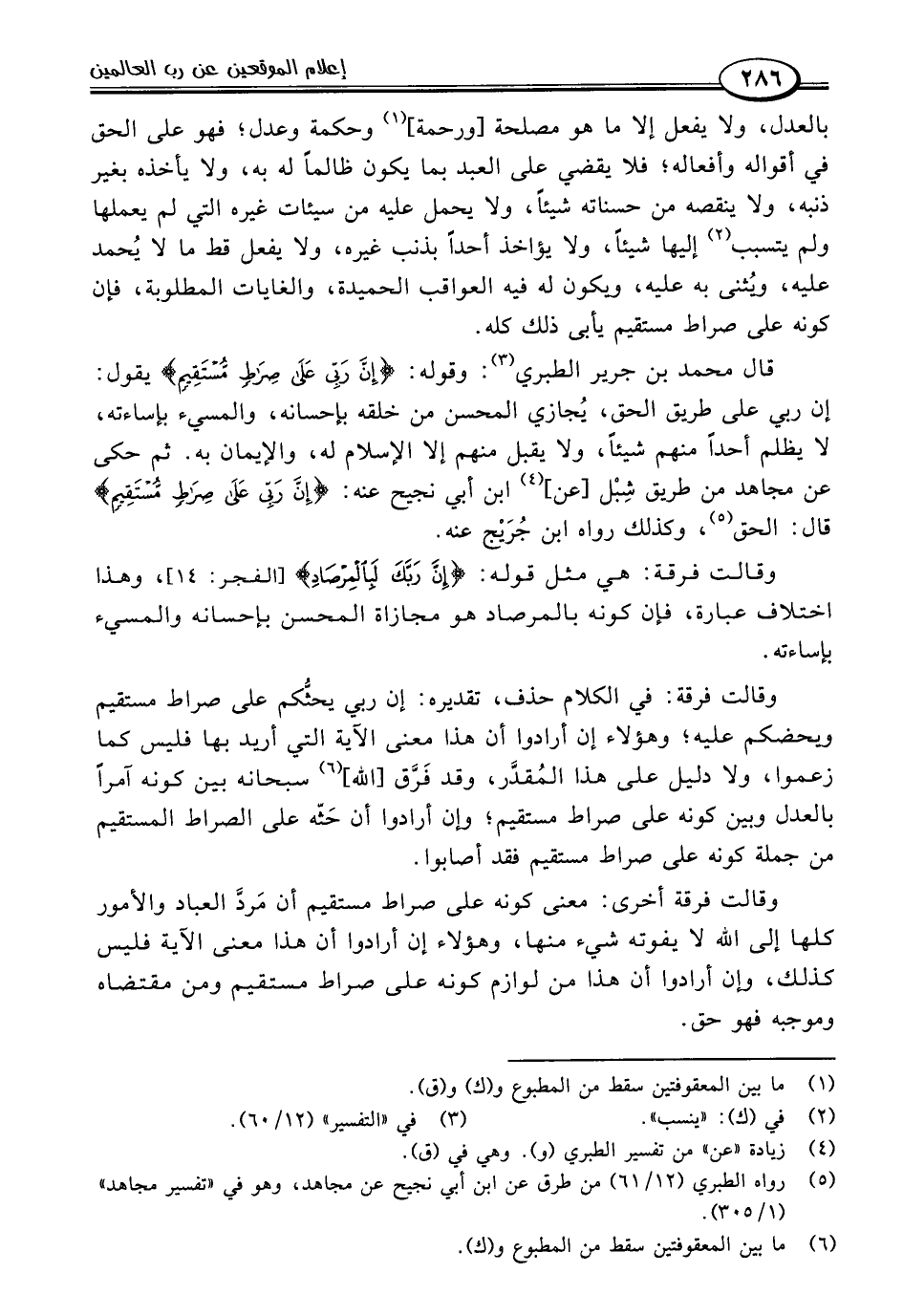 بالعدل، ولا يفعل إلا ما هو مصلحة [ورحمة] (١) وحكمة وعدل؛ فهو على الحق في أقواله وأفعاله؛ فلا يقضي على العبد بما يكون ظالمًا له به، ولا يأخذه بغير ذنبه، ولا ينقصه من حسناته شيئًا، ولا يحمل عليه من سيئات غيره التي لم يعملها ولم يتسبب (٢) إليها شيئًا، ولا يؤاخذ أحدًا بذنب غيره، ولا يفعل قط ما لا يُحمد عليه، ويُثنى به عليه، ويكون له فيه العواقب الحميدة، والغايات المطلوبة، فإن كونه على صراط مستقيم يأبى ذلك كله.