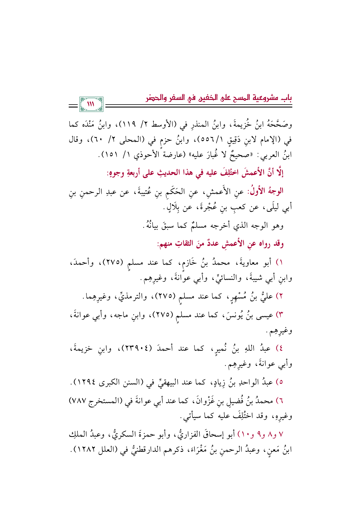 الوجهُ الأولُ: عنِ الأَعمشِ، عنِ الحكمِ بنِ عتيبةَ، عن عبد الرحمن بنِ أبي ليلى، عن كعبِ بنِ عُجرةَ، عن بِلَالٍ.
