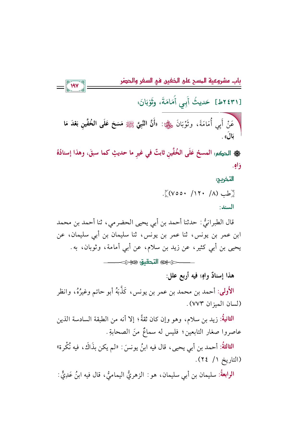 ◼ عَنْ أَبِي أُمَامَةَ، وثَوْبَانَ رضي الله عنهما: ((أَنَّ النَّبِيَّ صلى الله عليه وسلم مَسَحَ عَلَى الخُفَّينِ بَعْدَ مَا بَالَ)).