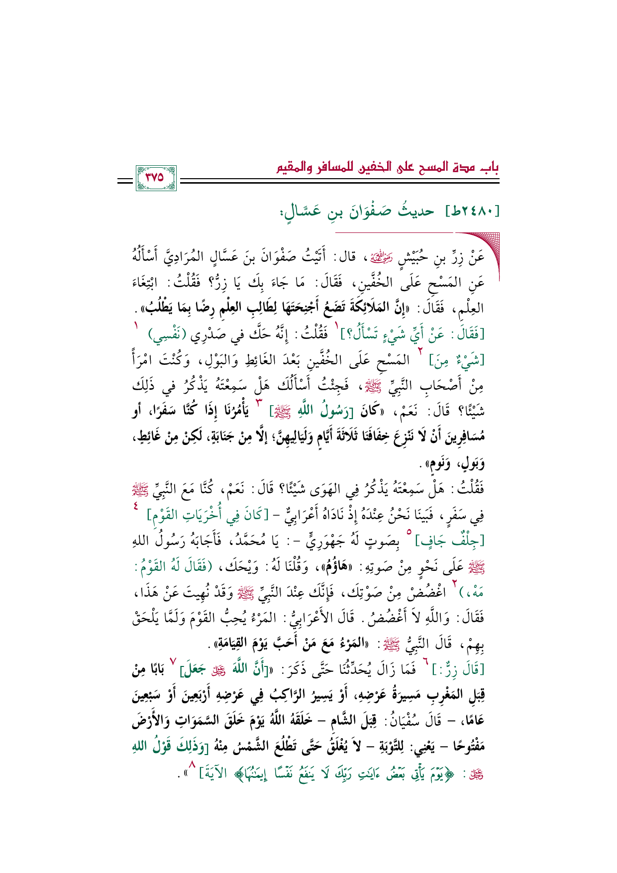 ٢٤٨٠ - حديثُ صَفْوَانَ بنِ عَسَّالٍ: