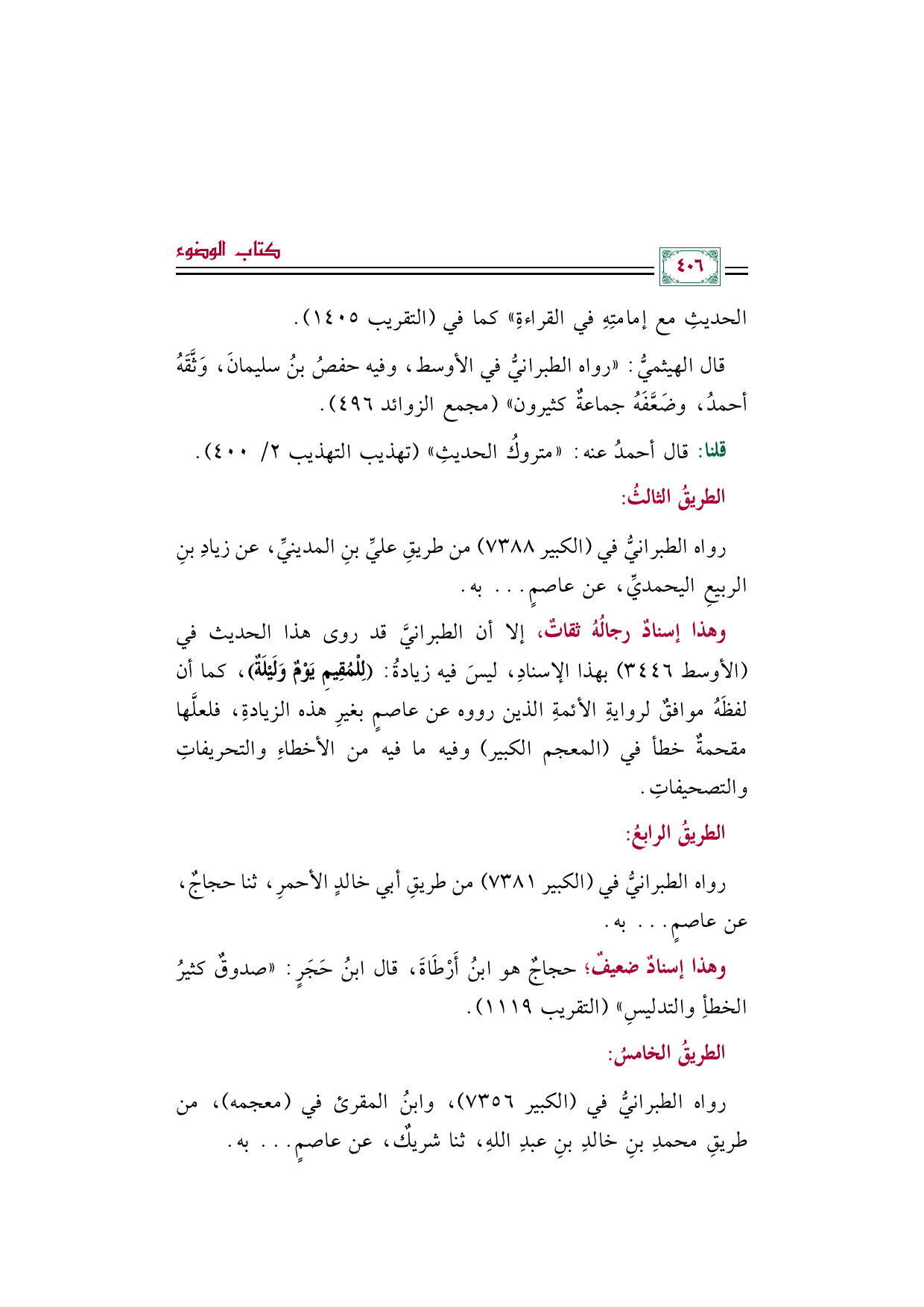 وهذا إسنادٌ رجالُهُ ثقاتٌ، إلا أن الطبرانيَّ قد روى هذا الحديث في (الأوسط ٣٤٤٦) بهذا الإسنادِ، ليس فيه زيادة: (لِلْمُقِيمِ يَوْمٌ وَلَيْلَةٌ)، كما أن لفظَهُ موافقٌ لروايةِ الأئمةِ الذين رووه عن عاصمٍ بغيرِ هذه الزيادة، فلعلَّها مقحمةٌ خطأ في (المعجم الكبير) وفيه ما فيه من الأخطاءِ والتحريفاتِ والتصحيفاتِ.