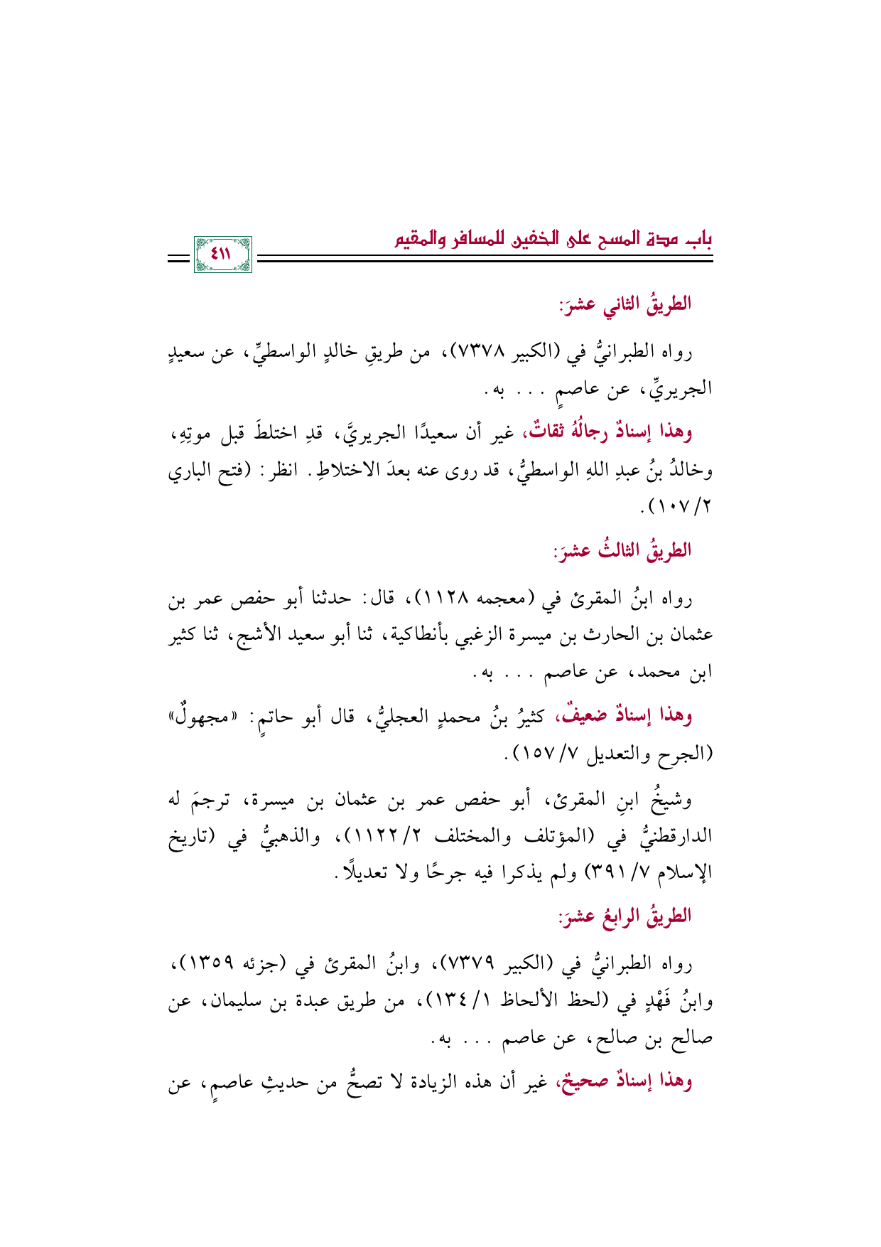 رواه الطبرانيُّ في (الكبير ٧٣٧٨)، من طريق خالدٍ الواسطيِّ، عن سعيدٍ الجريريِّ، عن عاصمٍ ... به.