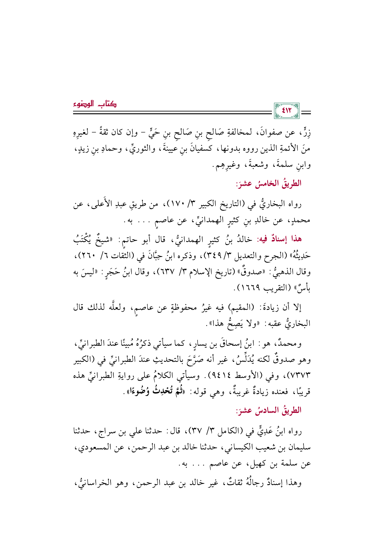 هذا إسنادٌ فيه: خالدُ بنُ كثيرٍ الهمدانيّ، قال أبو حاتم "شيخٌ يُكْتَبُ حَدِيثُهُ" (الجرح والتعديل ٣/ ٣٤٩)، وذكره ابنُ حِبانَ في (الثقات ٦/ ٢٦٠)، وقال الذهبيُّ: "صدوقٌ" (تاريخ الإسلام ٣/ ٦٣٧)، وقال ابنُ حَجَرٍ: "ليسَ به بأسٌ" (التقريب ١٦٦٩).