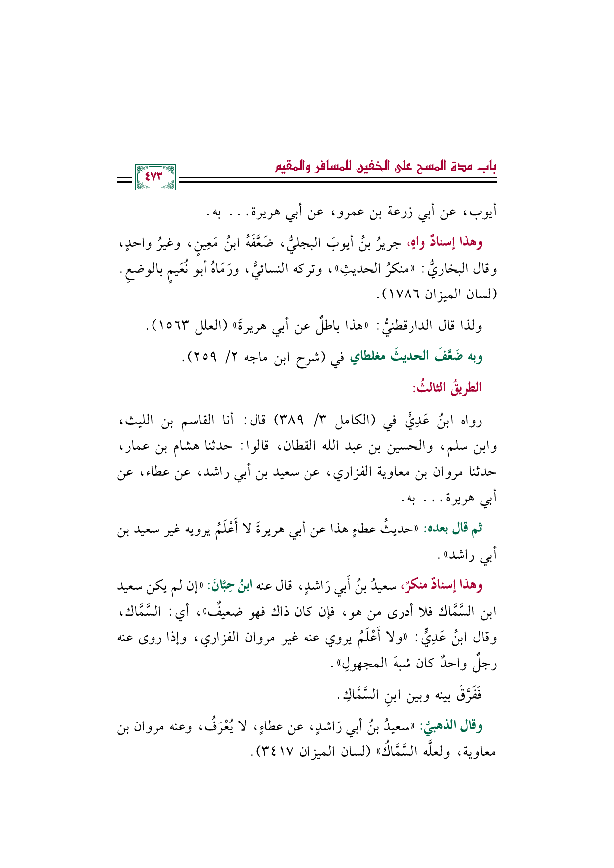 وبه ضَعَّفَ الحديثَ مغلطاي في (شرح ابن ماجه ٢/ ٢٥٩).
