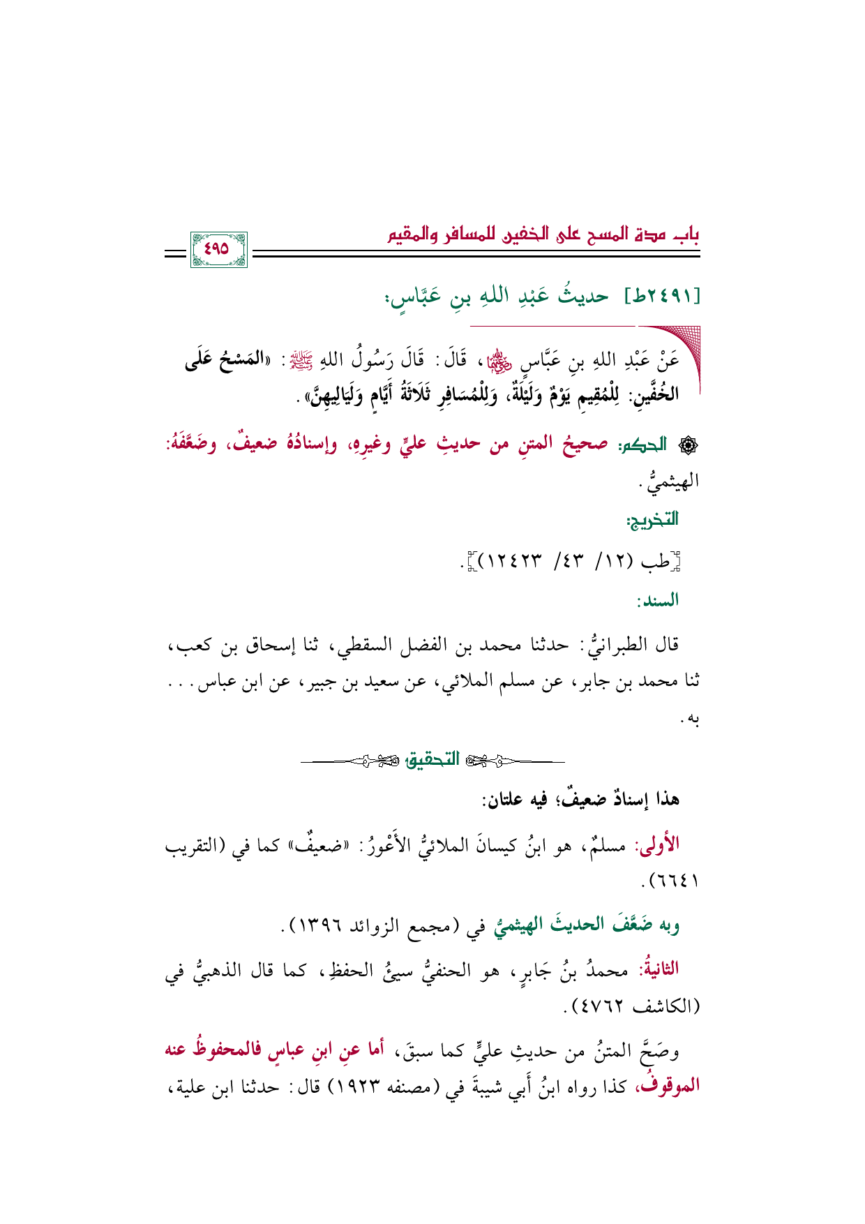 وبه ضَعَّفَ الحديثَ الهيثميُّ في (مجمع الزوائد ١٣٩٦).