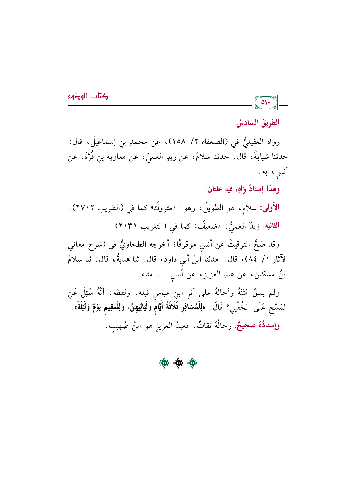 وقد صَحَّ التوقيتُ عن أنسٍ موقوفًا؛ أخرجه الطحاويُّ في (شرح معاني الآثار ١/ ٨٤)، قال: حدثنا ابنُ أبي داودَ، قال: ثنا هدبةُ، قال: ثنا سلامُ بنُ مسكين، عن عبدِ العزيزِ، عن أنسٍ ... مثله.