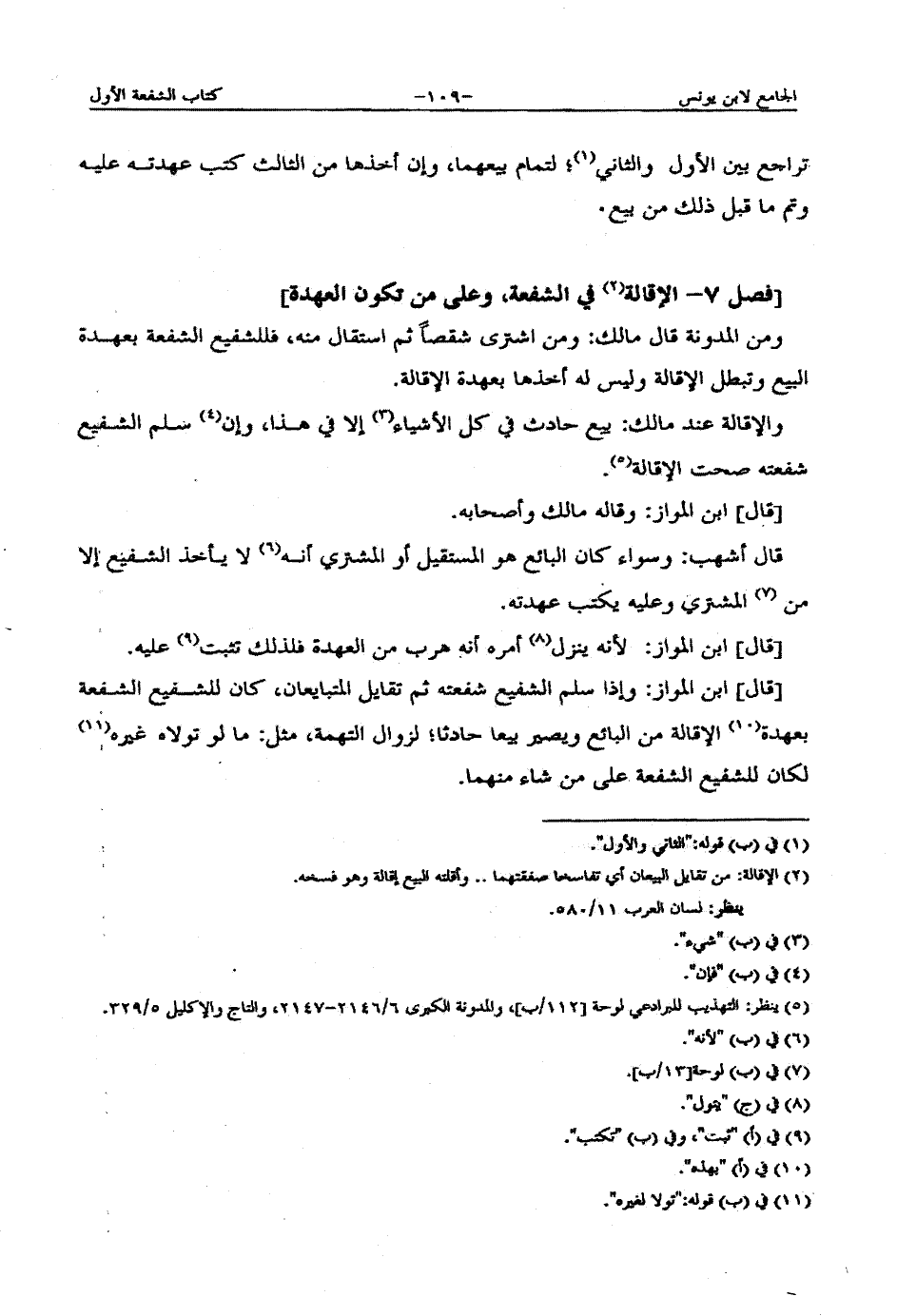 قال أشهب: والقياس عندي إذا استقال البائع المشتري فأقاله بغير زيادة ولا نقصان وقبل تسليم الشفيع شفعته أن يأخذ من أيهما شاء، ولو قاله قائل: لم أعبه، ولكن الاستحسان أن لا تكون له شفعة إلا على المشتري؛ لفراره من العهدة، وبه أخذ محمد بن حبيب.