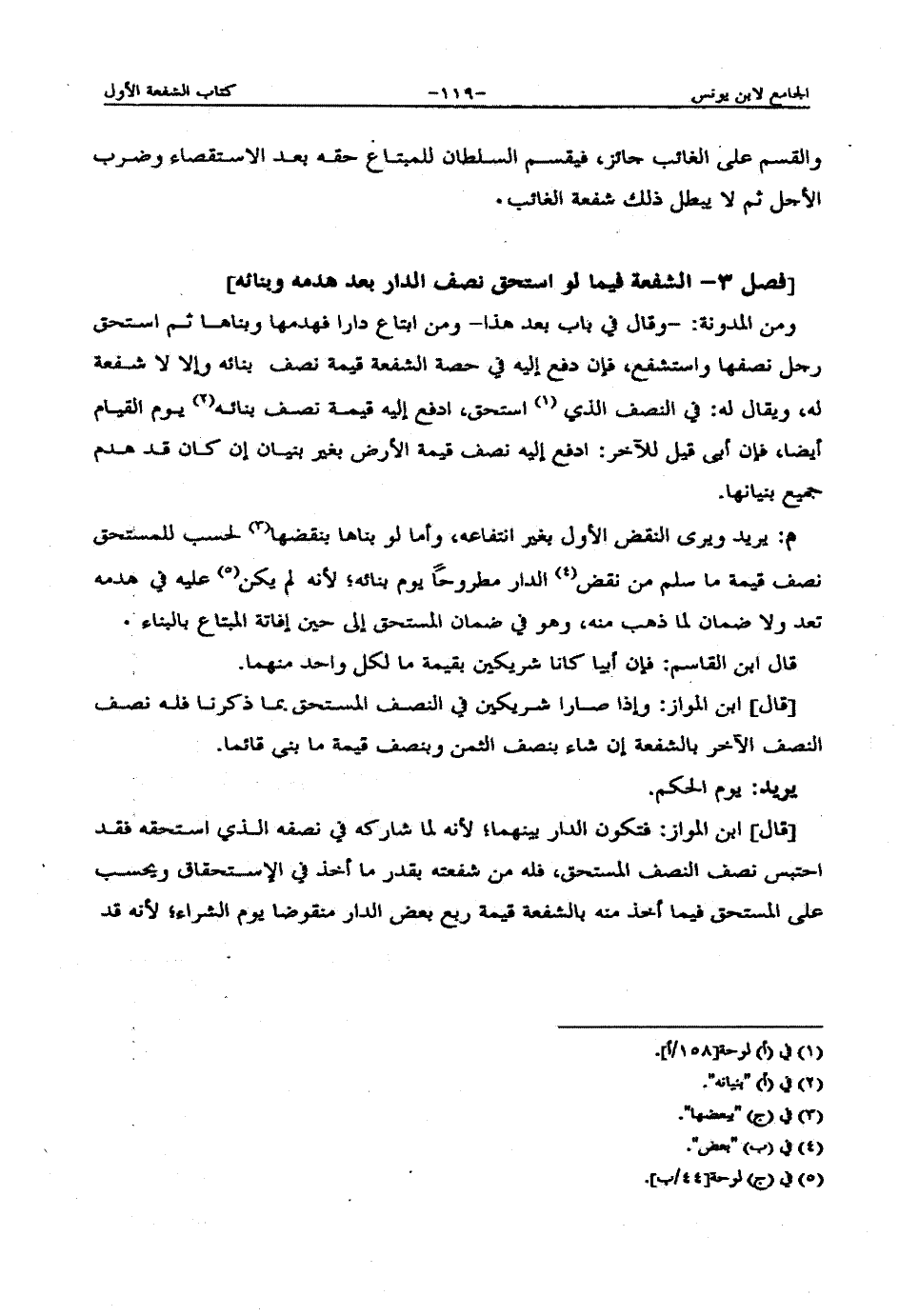 وقال ابن المواز: وإن باع النقض وقبض ثمنه، فللمستحق أخذ نصف الدار بالشفعة بجميع ثمن النصف إلا أن يحسب له على المشتري للشفيع في الثمن الأقل مما وصل إليه من نصف ثمن النقض أو من قيمته ملغي من الثمن أجمع بعد قبض الثمن على الأرض،