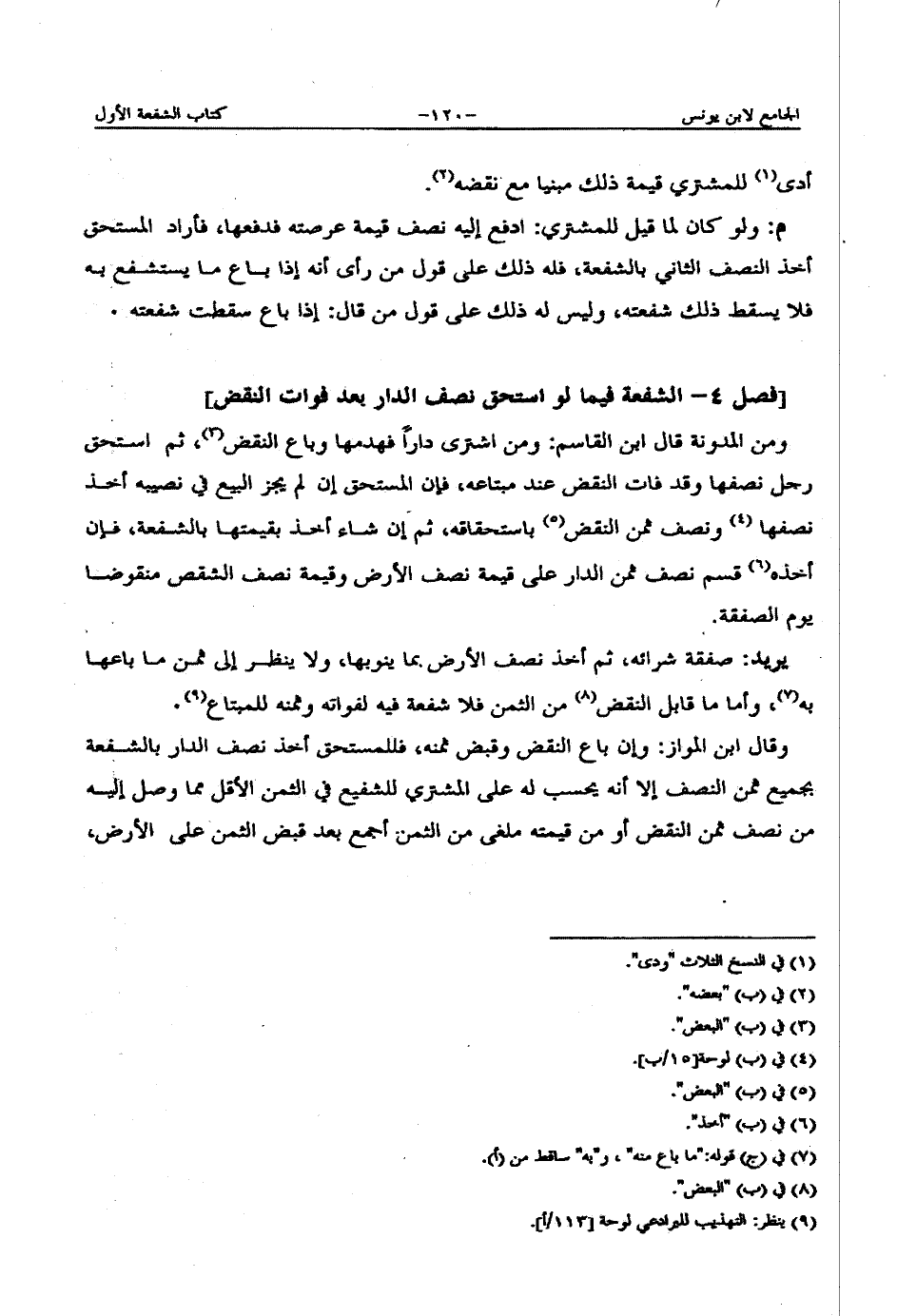م: وقو ل ابن القاسم أبين؛ لأن الأنقاض لما هدمت كانت كعرض اشترى مع العرصة وهو لو باع العرض المشترى مع العرصة لم ينظر إلى ثمنه وكان له أخذ العرصة بما ينوبها من الثمن من قيمتها من قيمة العرصة، فكذلك حكم النقض، والله أعلم.