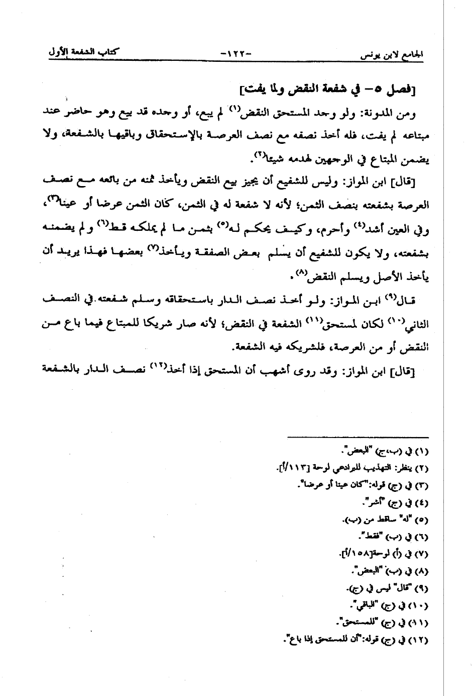 أن له أن يأخذ ثمن ما بيع من النقض قل أو كثر، فإن كان أكثر من ثمن نصف الدار كما يأخذه عما استحقه، وهو وهم لم يصوبه أحد من أصحابه.