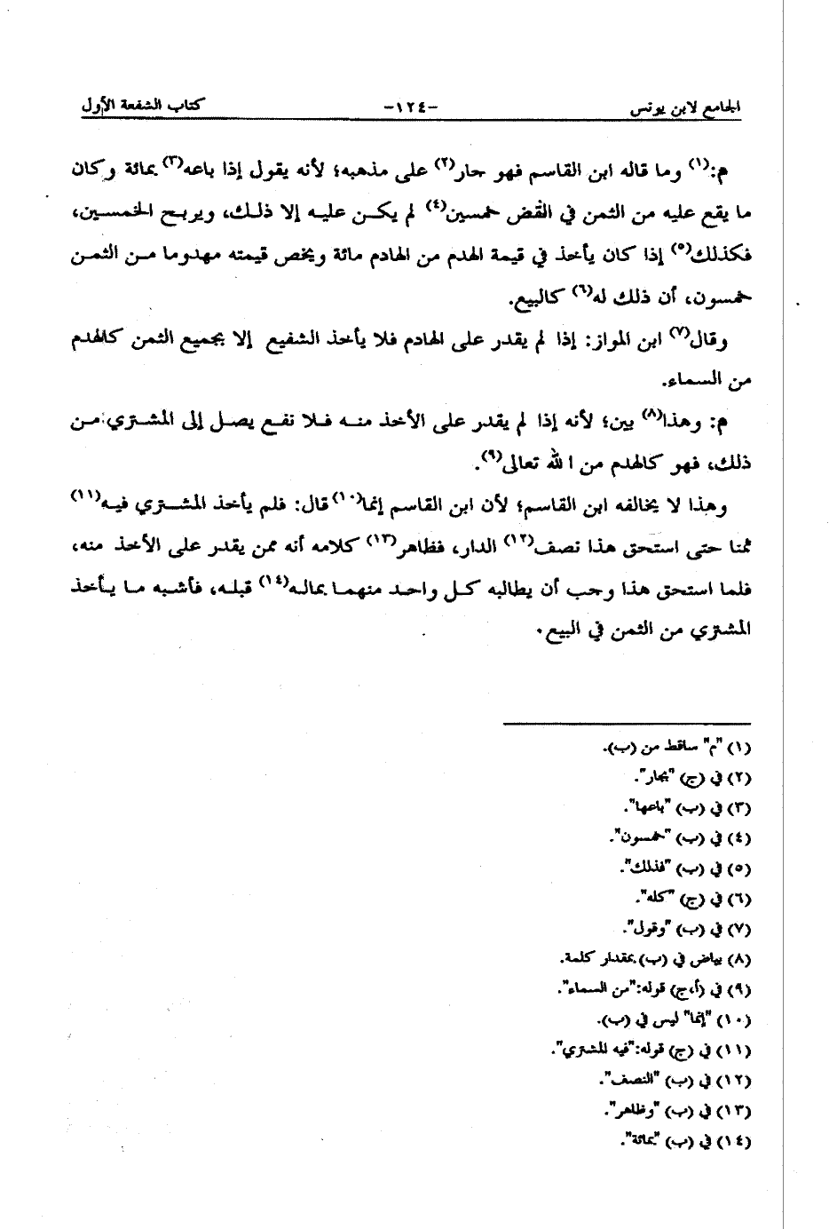قال: وقال أيضاً ابن القاسم: إن هدمها أجنبي تعدياً فليتبعه مستحق نصفها بنصف قيمة الهدم، وإن أخذ بالشفعة أخذ بنصف جميع الثمن، ولا يحط عنه للهدم بشيء.