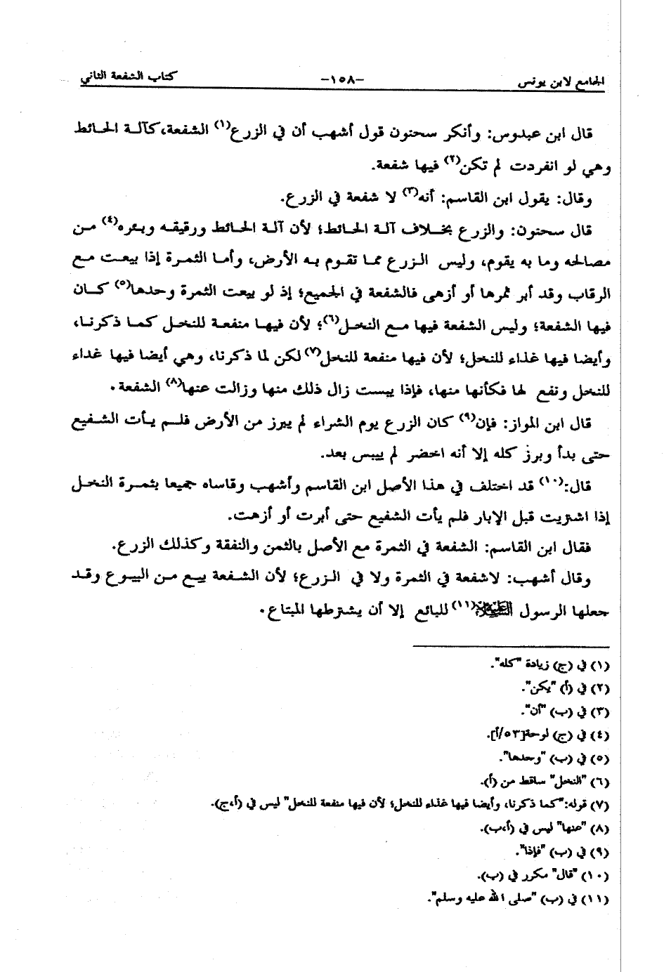 قال ابن عبدوس: وأنكر سحنون قول أشهب أن في الزرع الشفعة، كآلة الحائط وهي لو انفردت لم تكن فيها شفعة.