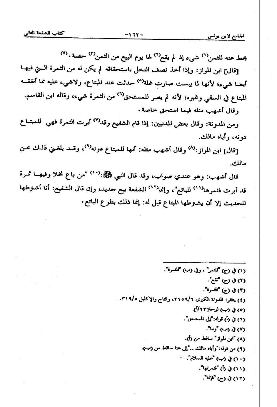 قال أشهب: وهو عندي صواب، وقد قال النبي صلى الله عليه وسلم: "من باع نخلا وفيها ثمرة قد أبرت فثمرها للبائع"، وإنما الشفعة بيع جديد، وإن قال الشفيع: أنا أشترطها للحديث إلا أن يشترطها المبتاع قيل له: إنما ذلك بطوع البائع.