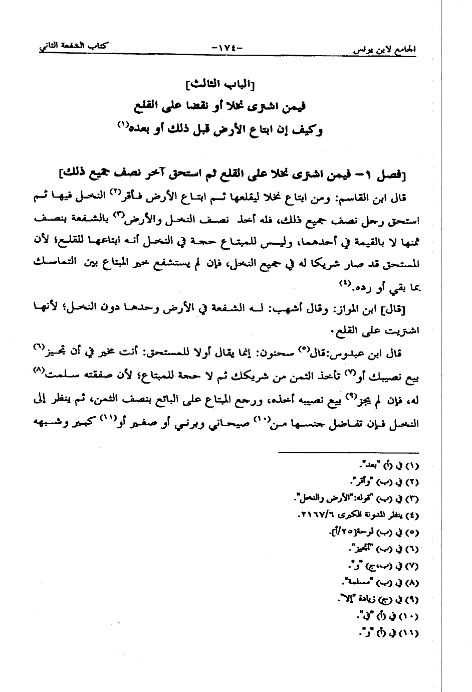 [قال] ابن المواز: وقال أشهب: له الشفعة في الأرض وحدها دون النخل؛ لأنها اشتريت على القلع.