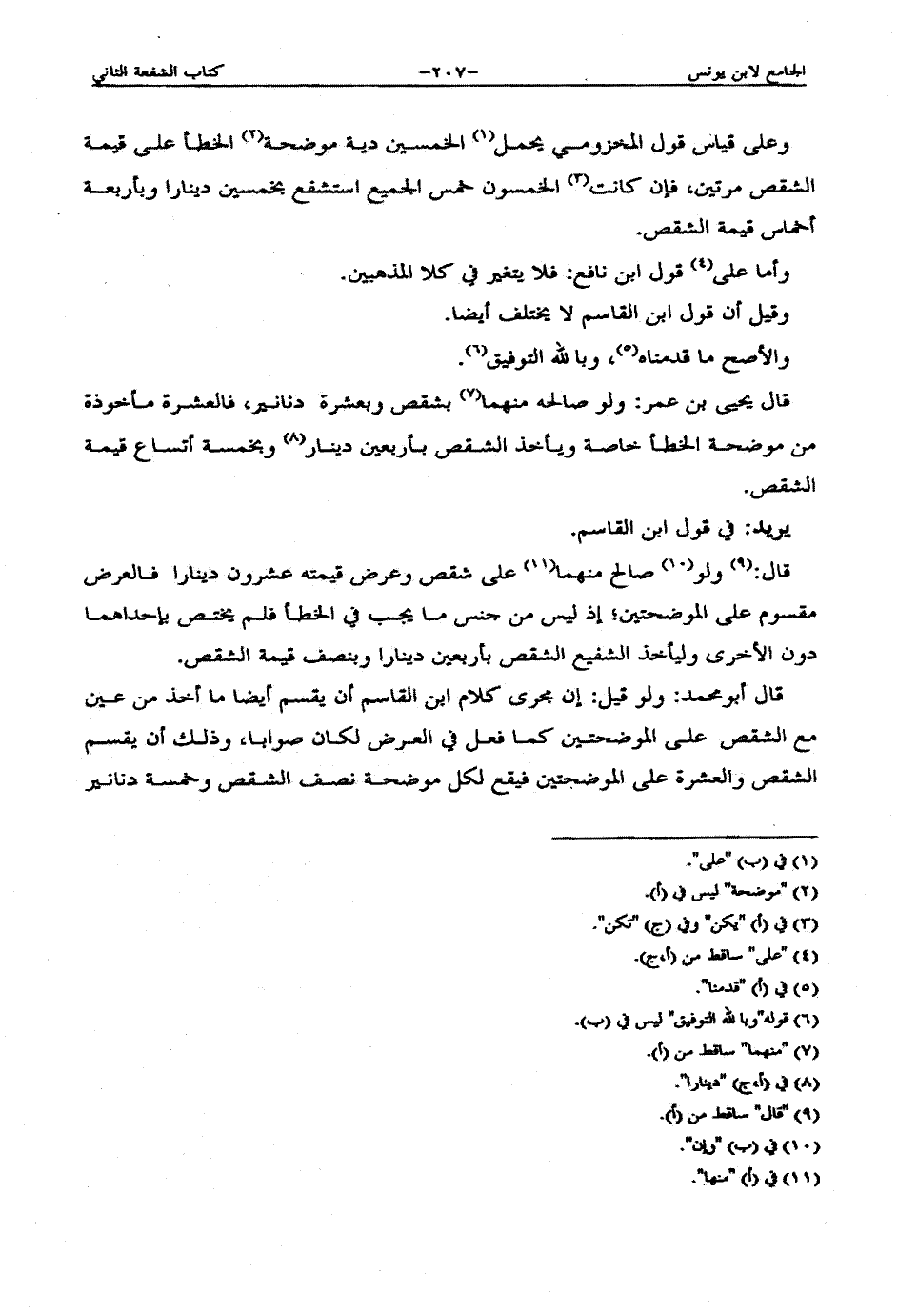 وعلى قياس المخزومي يحمل الخمسين دية موضحة على قيمة الشقص مرتين، فإن كانت الخمسون خمس الجميع استشفع بخمسين ديناراً وبأربعة أخماس قيمة الشقص.