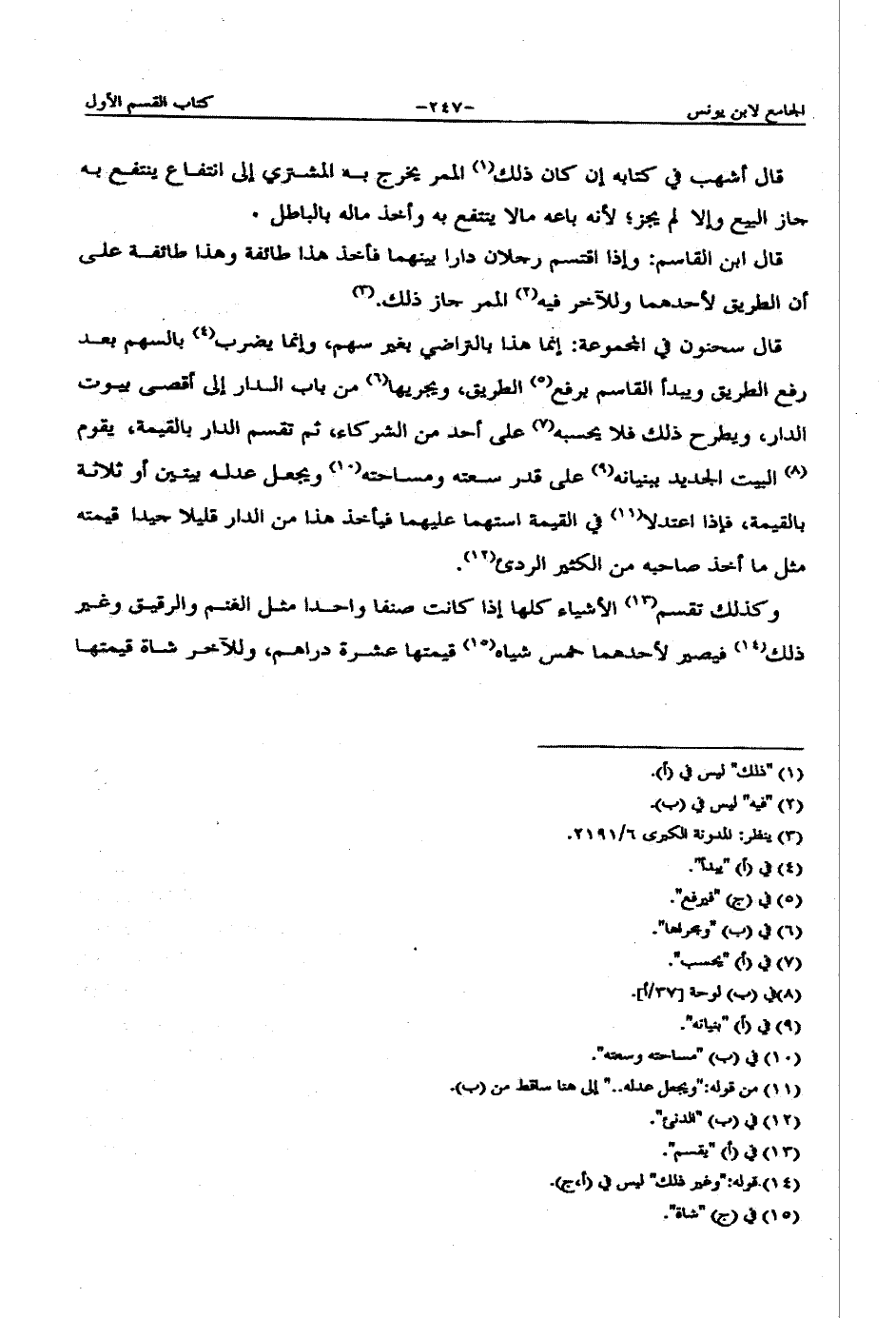 قال ابن القاسم: وإذا اقتسم رجلان دارا بينهما فأخذ هذا طائفة وهذا طائفة على أن الطريق لأحدهما وللآخر فيه الممر جاز ذلك.