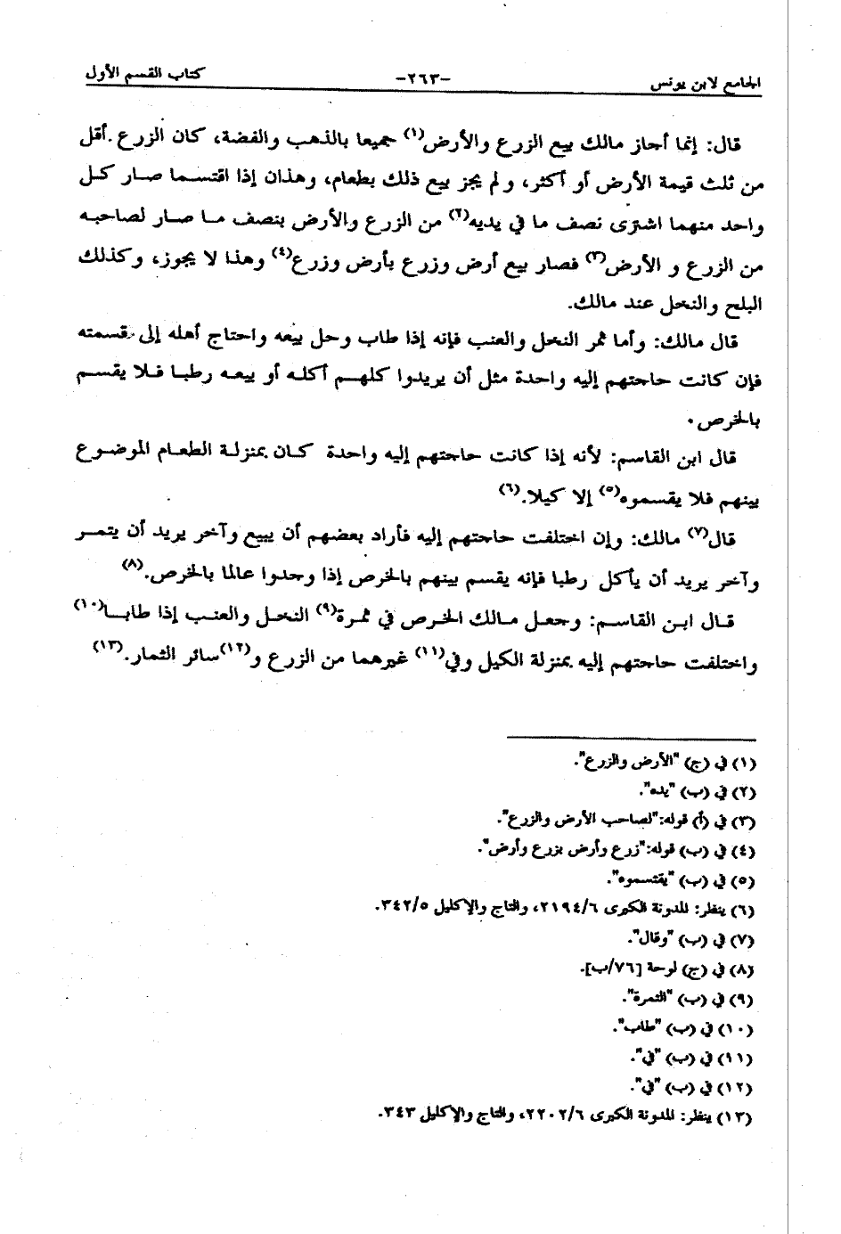 قال: إنما أجاز مالك بيع الزرع والأرض جميعًا بالذهب والفضة، كان الزرع أقل من ثلث ثيمة الأرض أو أكثر، ولم يجز بيع ذلك بطعام، وهذان إذا اقتسما صار كل واحد منهما اشترى نصف ما في يديه من الزرع والأرض بنصف ما صار لصاحبه من الزرع والأرض قصار بيع أرض وزرع بأرض وزرع وهذا لا يجوز، وكذلك البلح والنخل عند مالك.