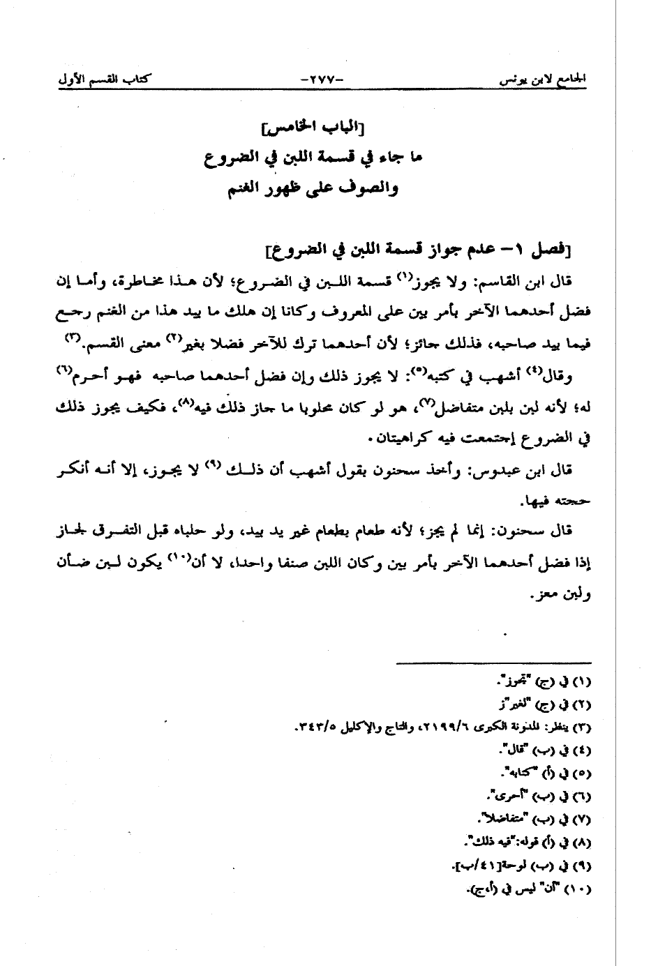 [فصل 1 - عدم جواز قسمة اللبن في الضروع]