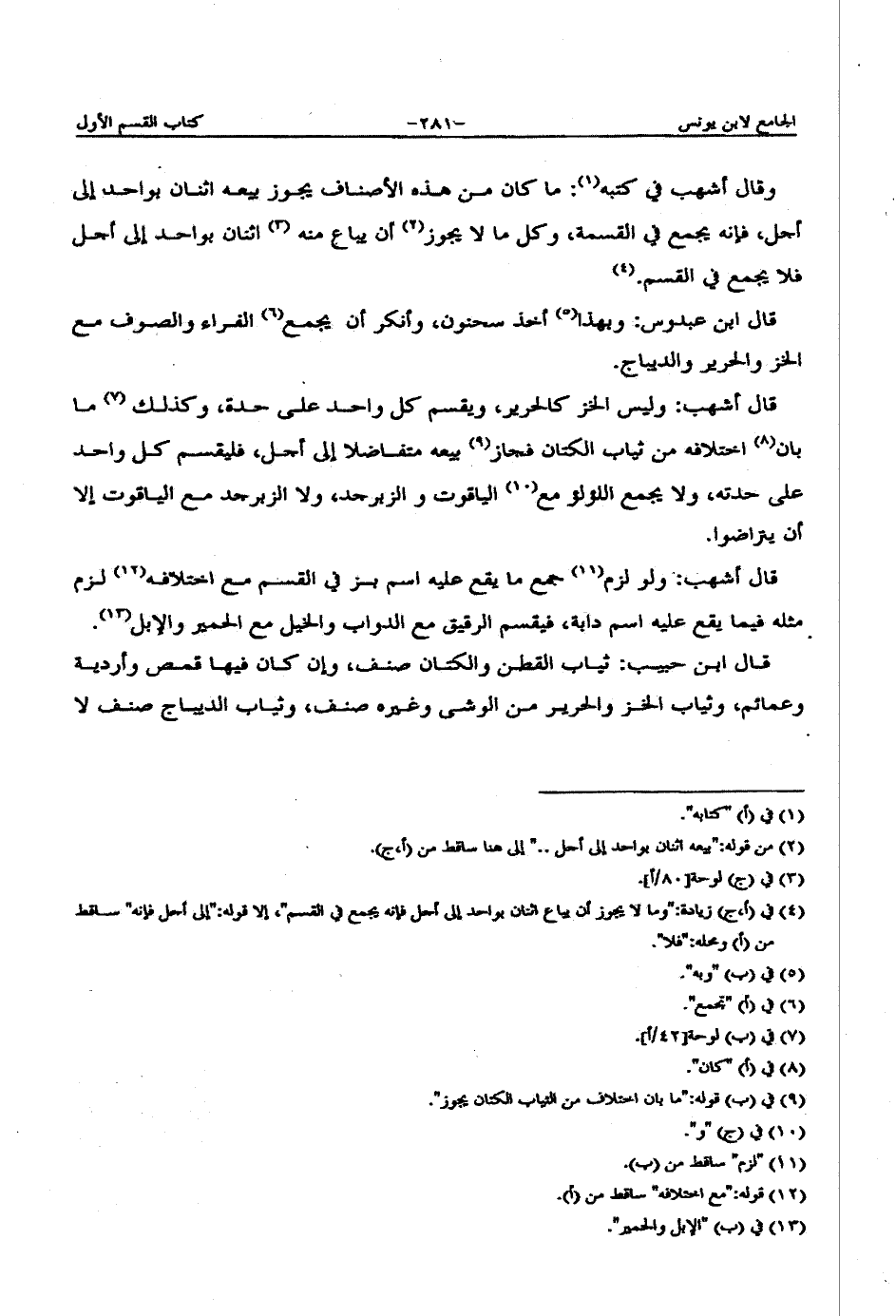 قال ابن عبدوس: وبهذا أخذ سحنون، وأنكر أن يجمع الفراء والصوف مع الخز والحرير والديباج.