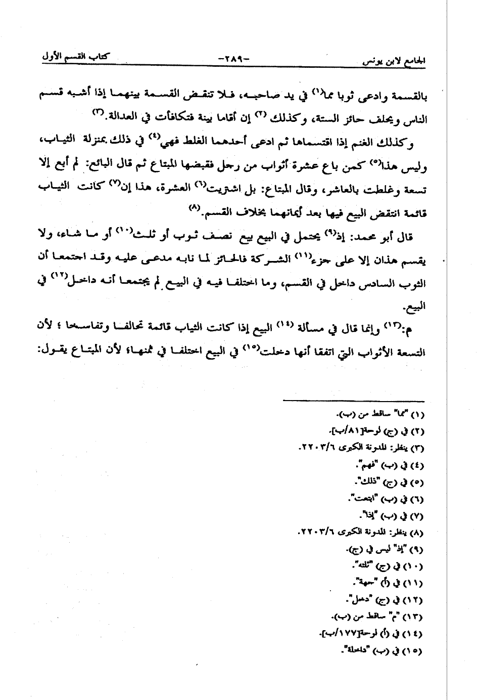 قال أبو محمد: إذ يحتمل في البيع بيع نصف ثوب أو ثلث أو ما شاء، ولا يقسم هذان إلا على جزء الشركة فالحائز لما نابه مدعى عليه وقد اجتمعا أن الثوب السادس داخل في القسم، وما اختلفا فيه في البيع لم يجتمعا أنه داخل في البيع.