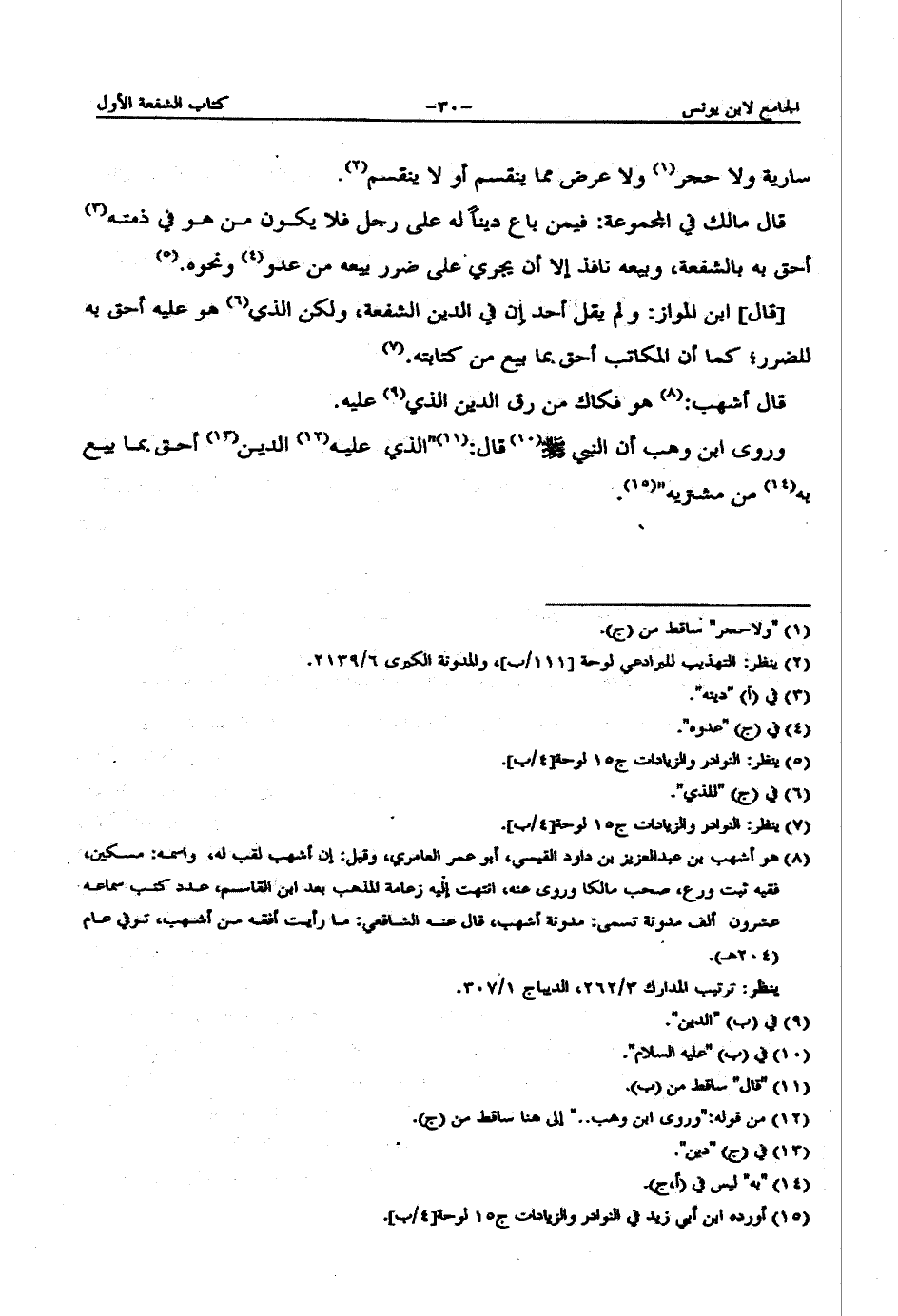ومن المدونة قال المالك: وإذا اقتسم قوم داراً وتركوا الساحة لم يقسموها فباع أحدهم ما صار له من الدار فلا شفعة بينهم.