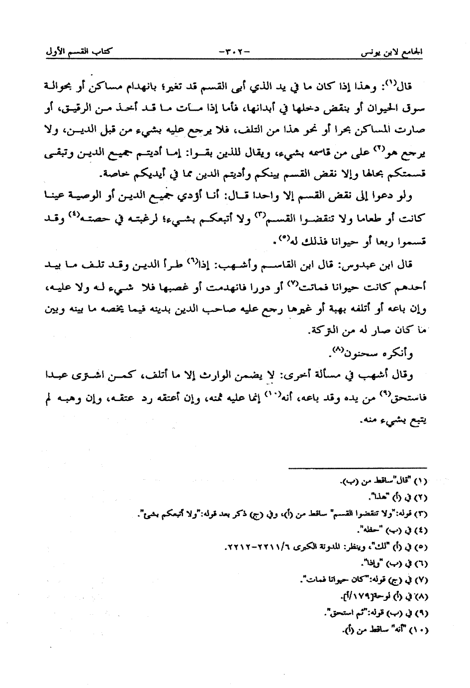 قال ابن عبدوس: قال ابن القاسم وأشهب: إذا طرأ الدين وقد تلف ما بيد