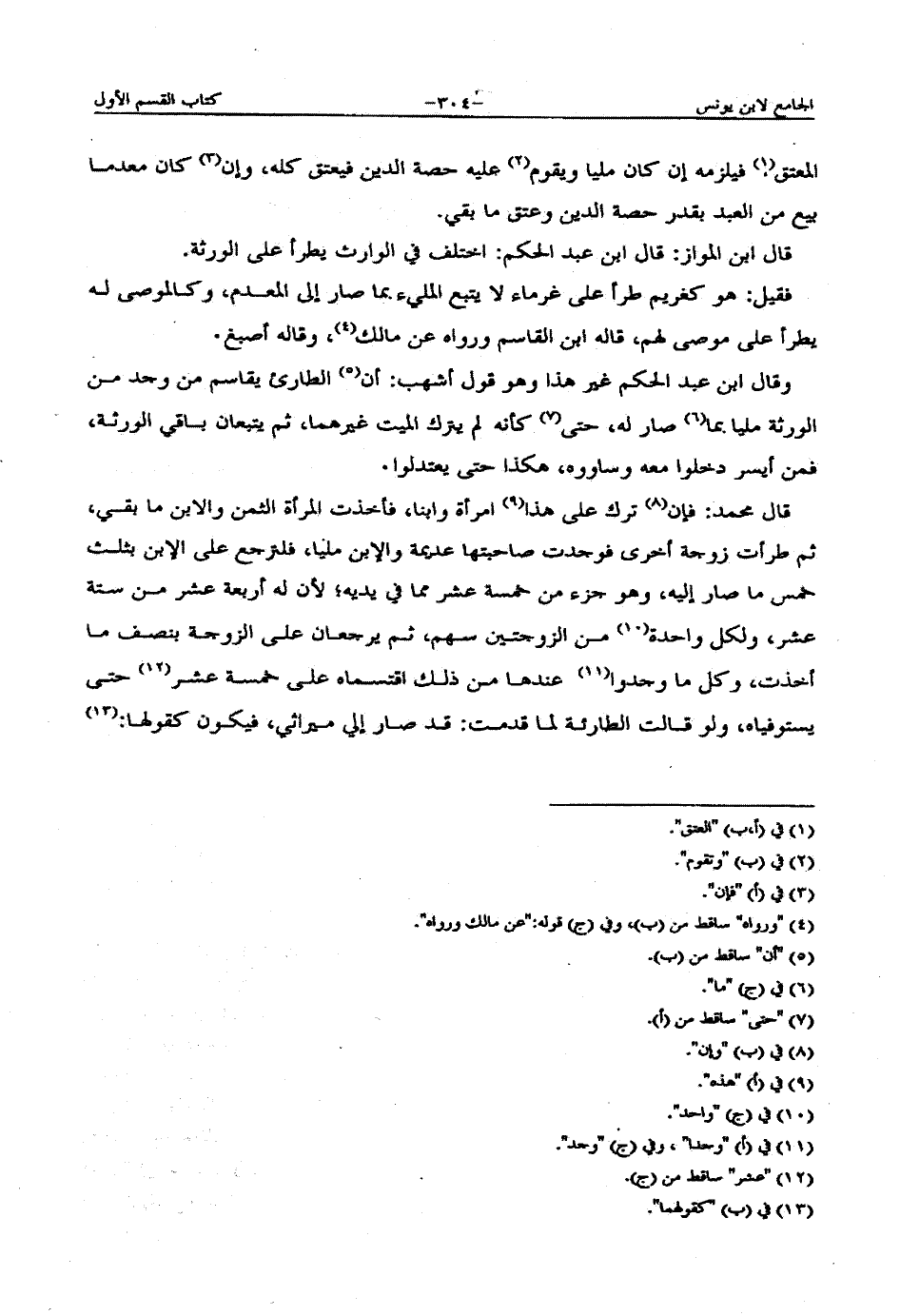 قال ابن المواز: قال ابن عبد الحكم: اختلف في الوارث يطرأ على الورثة.